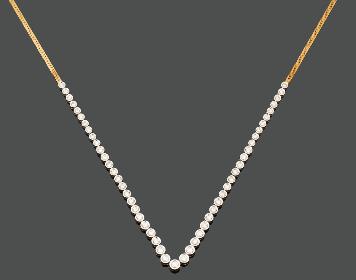 COLLIER articulé en or 750 millièmes, orné au centre d'une ligne de cinquante et un DIAMANTS ronds de taille brillant sertis clos, légèrement en chute, pour environ 3 à 3,7 carats.