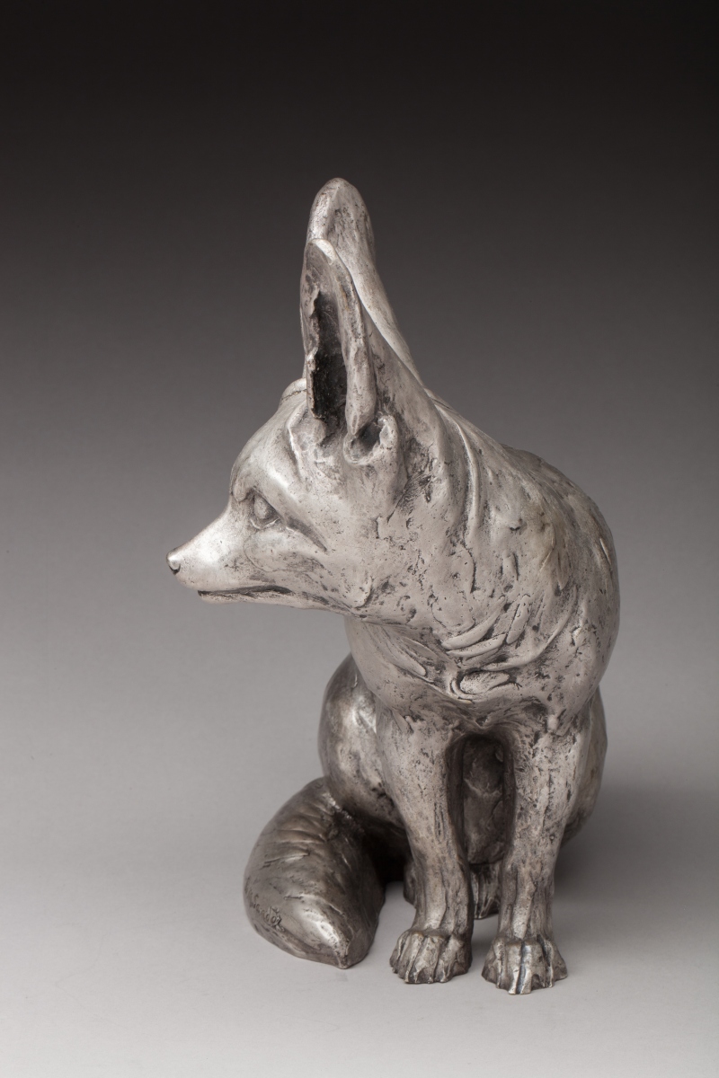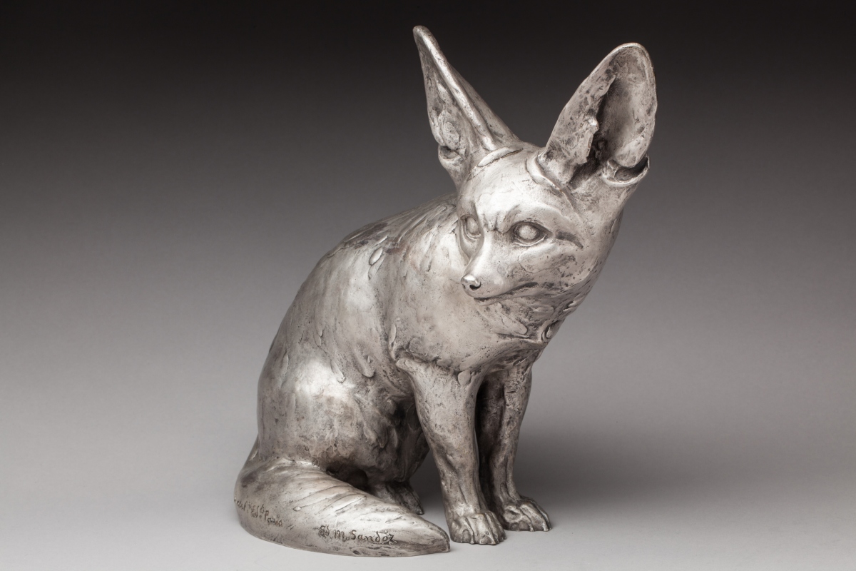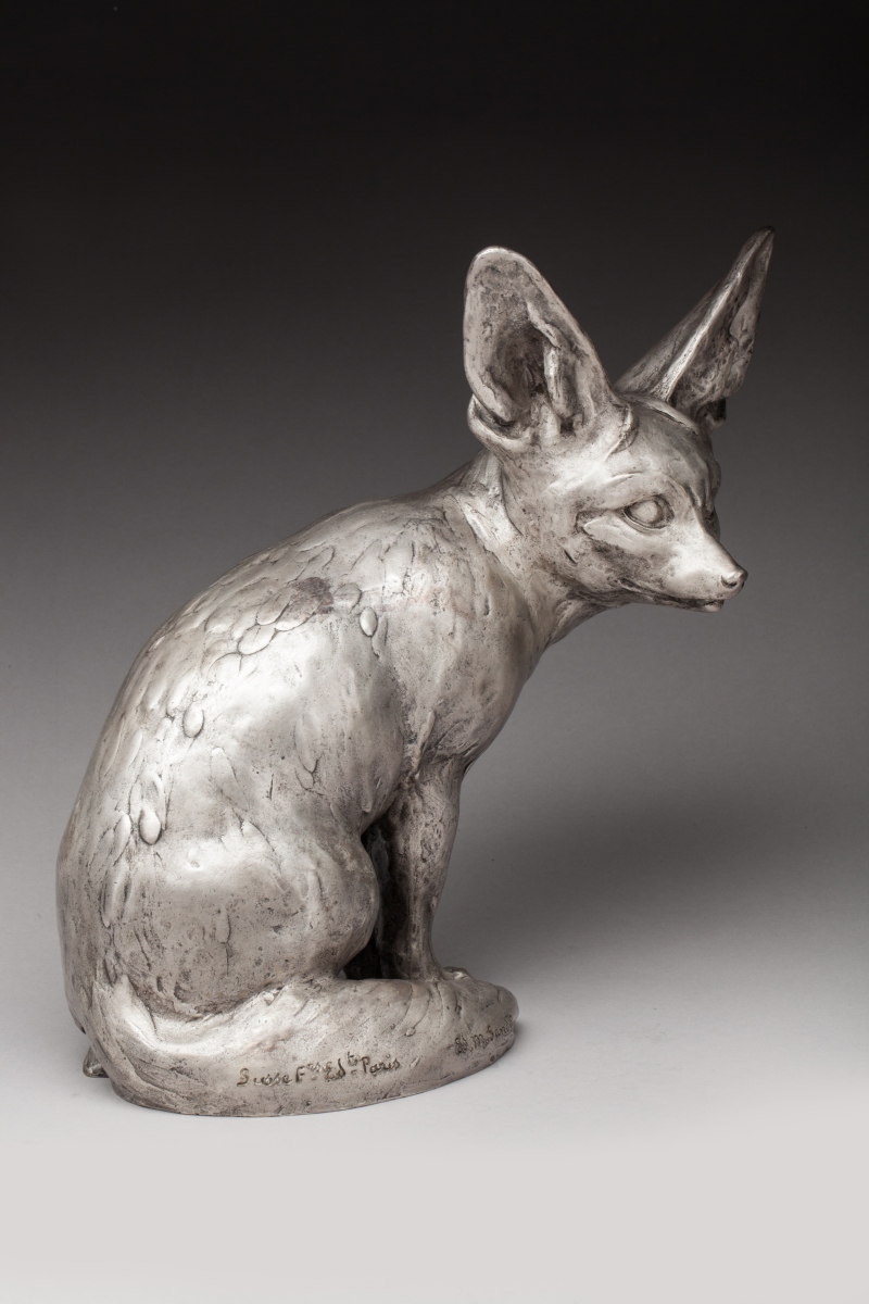 A sitting fennec by Edouard Marcel SANDOZ. A lost wax silver patinated bronze, signed, marked and stamped by the foundry Susse.