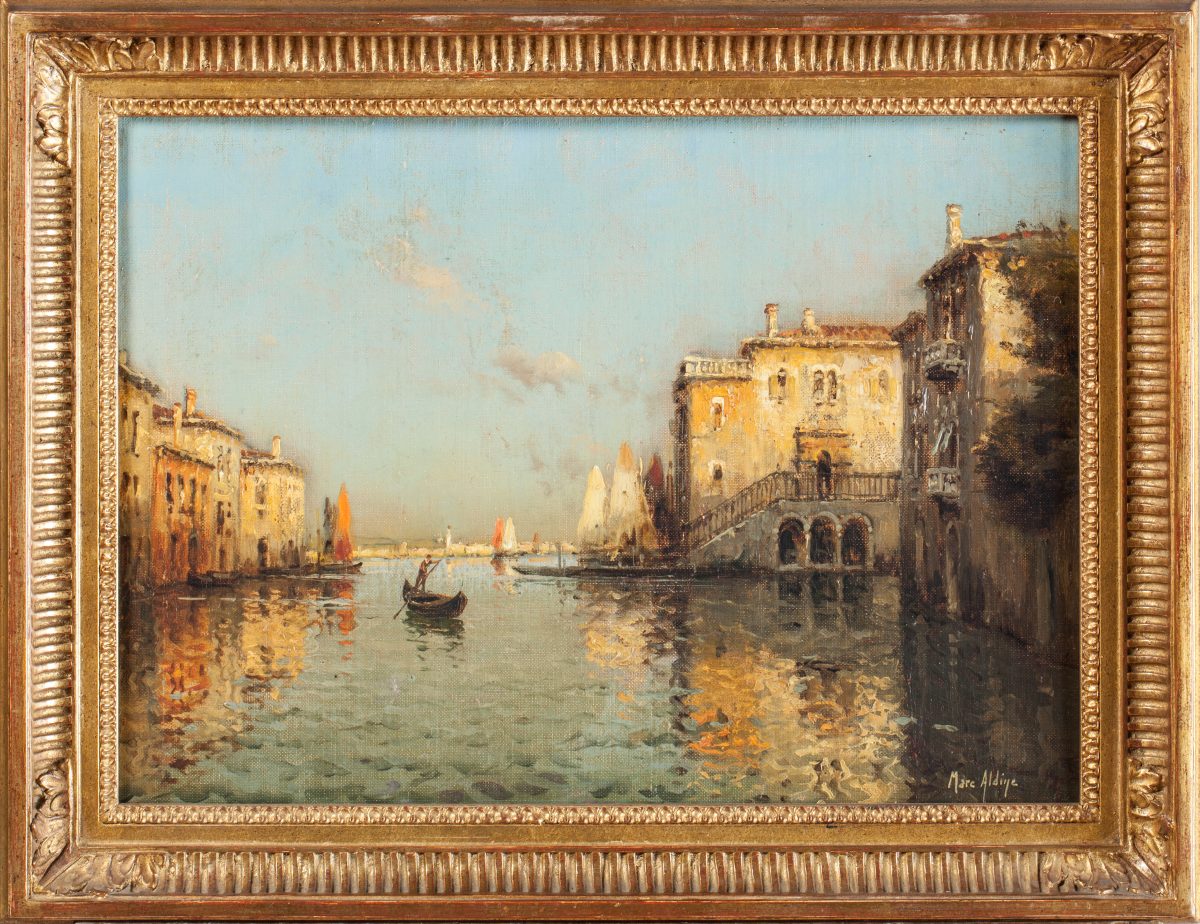 Bouvard also called "Marc ALDINE". Views of Venice. Two signed oils on canvas mounted on cardboard.