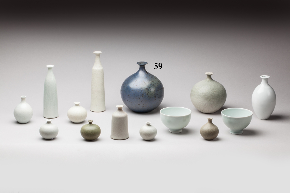 Robert DEBLANDER. Round blue glazed sandstone VASE. Signed.