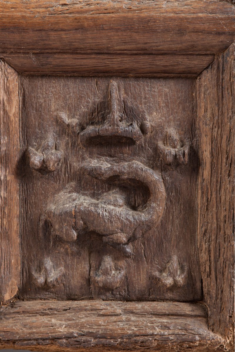 Carved oak WINDOW presumably from " FRANÇOIS 1ER" at the Château de Chambord ornamented with salamander and François 1st monogram. 16th century and posterior restorations.