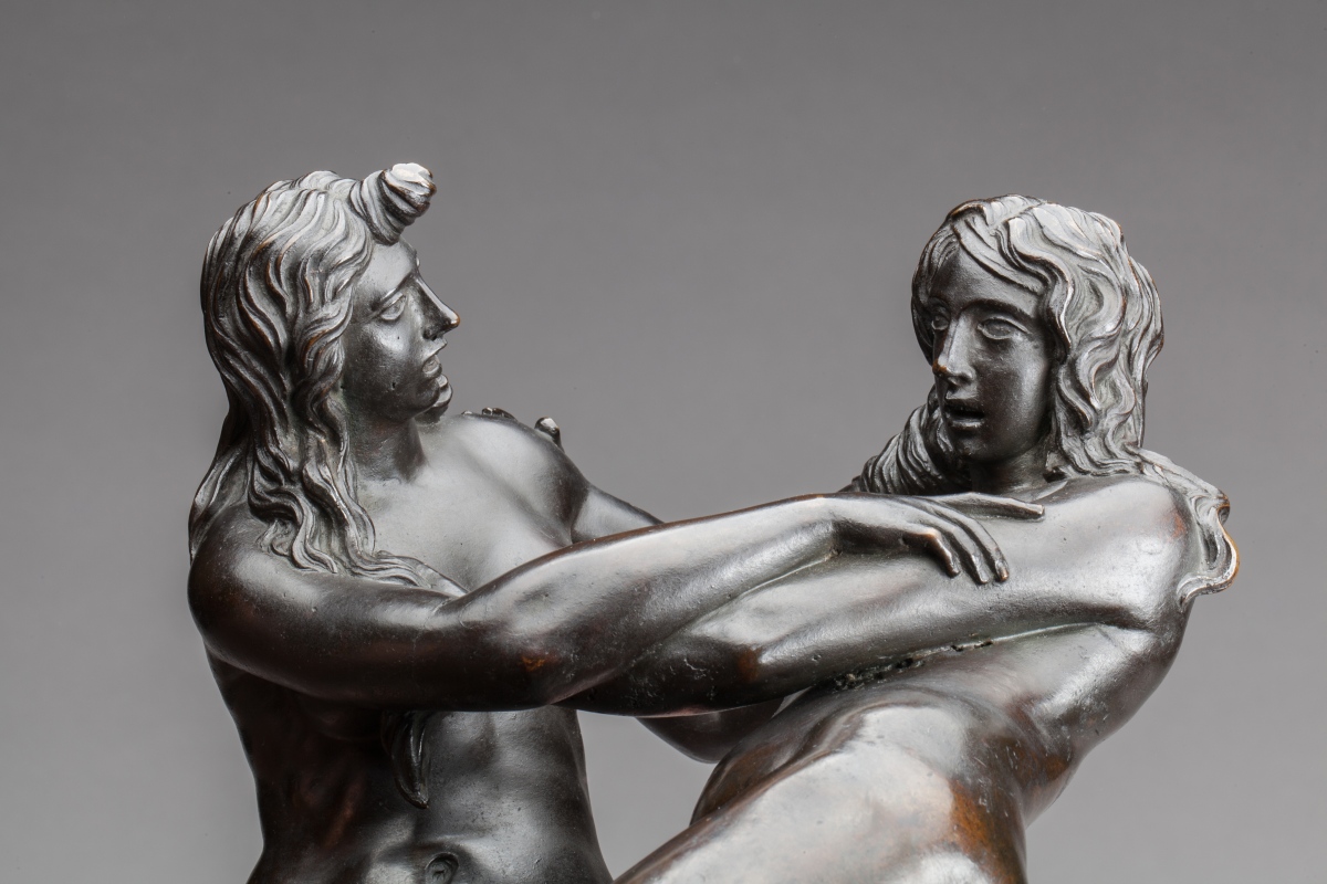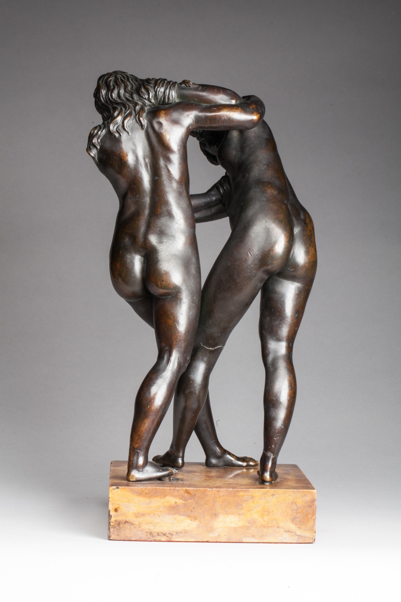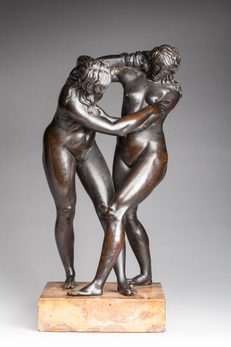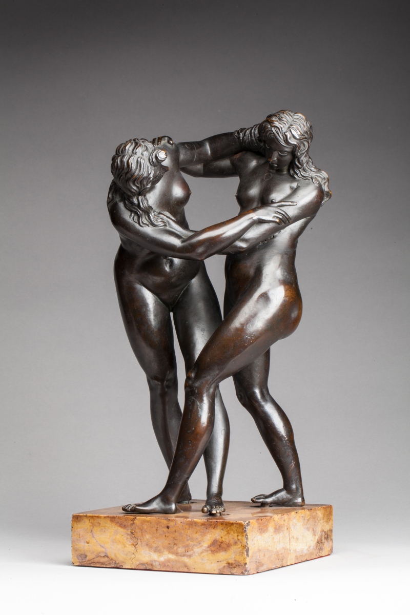 Based on a model attributed to Ferdinando TACCA. Patined BRONZE figuring two women struggling mounted on a Sienna yellow marble. Late 17th - beginning of 18th century.