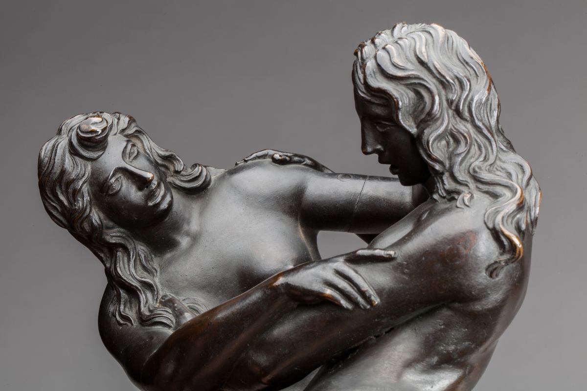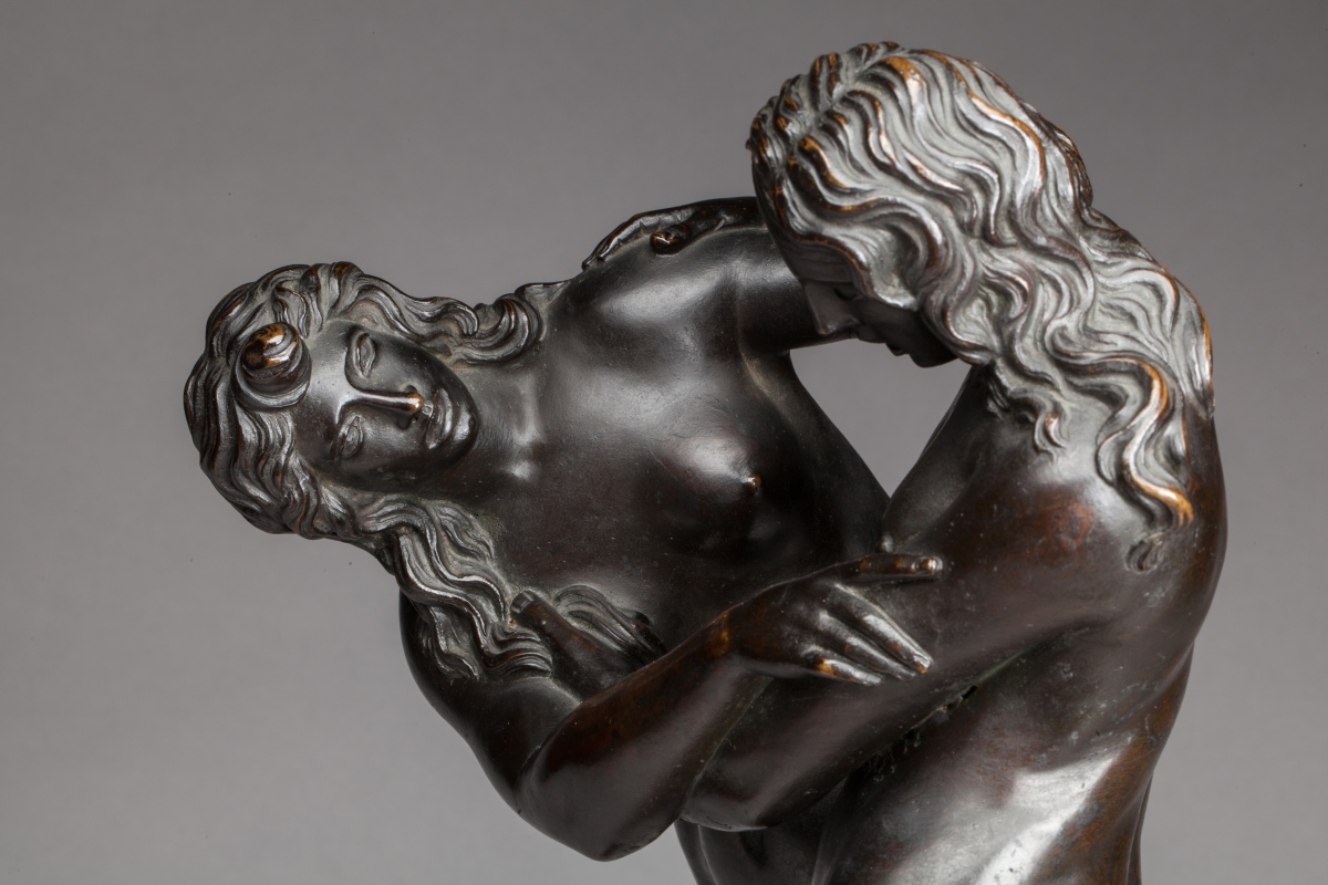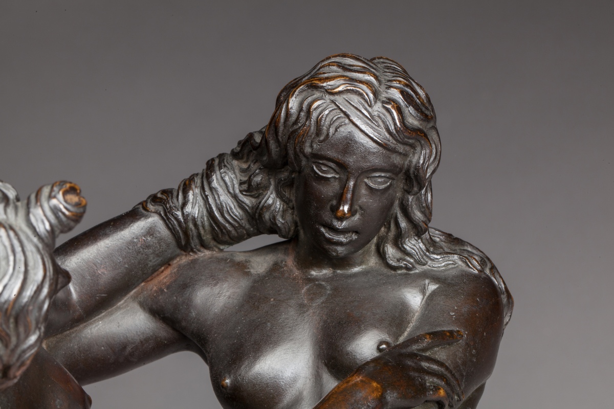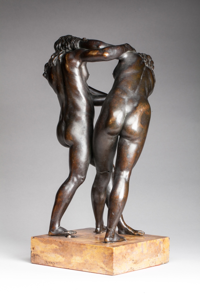 Based on a model attributed to Ferdinando TACCA. Patined BRONZE figuring two women struggling mounted on a Sienna yellow marble. Late 17th - beginning of 18th century.