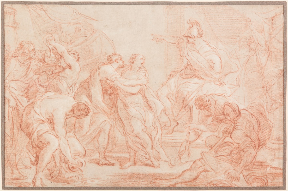Gaetano GANDOLFI. The Continence of Scipio. Sanguine with white highlights.
