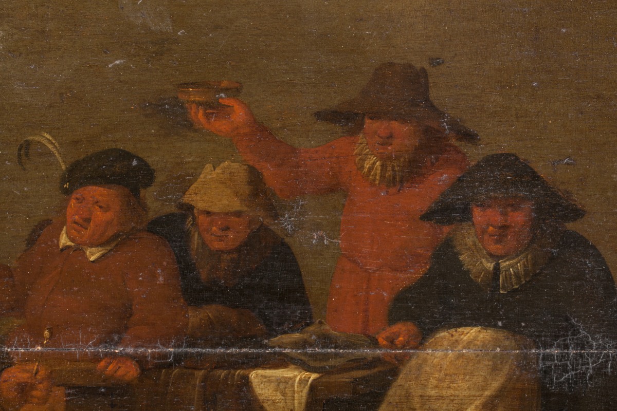 L'historien d'art Fred Meijers a pu regrouper un corpus d'une trentaine de peintures, la plupart monogrammées IS, sous le nom de Jan Spanjaert, un peintre proche de Bartholomeus Molenaer et de Pieter de Bloot (sur le site internet rkd.nl). Parmi ses autres tableaux monogrammés IS, citons l'Intérieur de taverne au musée Fabre de Montpellier (inv. 895-7-51) ou celui autrefois au Phoenix art Museum. Les natures mortes au premier plan, avec les pichets en terre ou les bassines en cuivre et en bois, sont caractéristiques de sa manière.