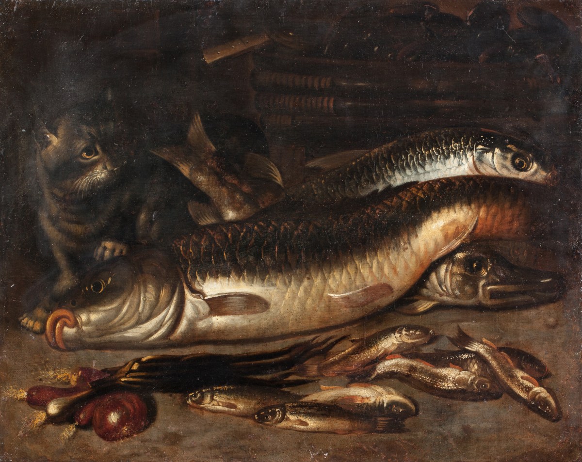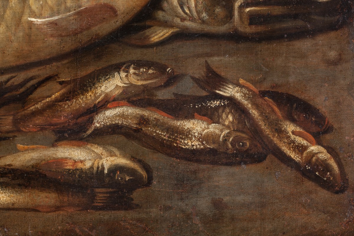 Pieter VAN BOUCLE. Still life with carp and fishes. Canvas.