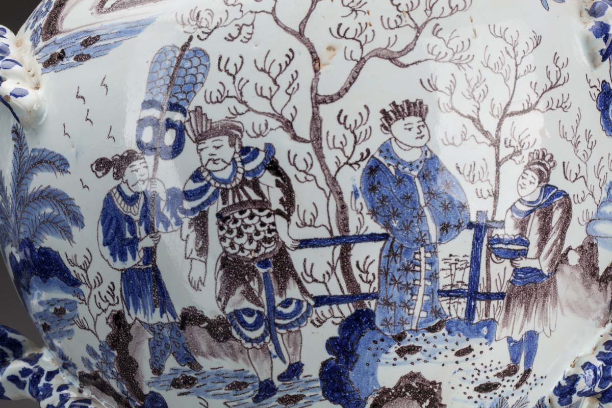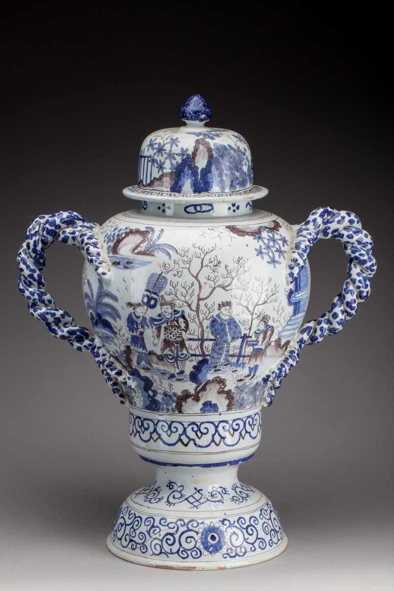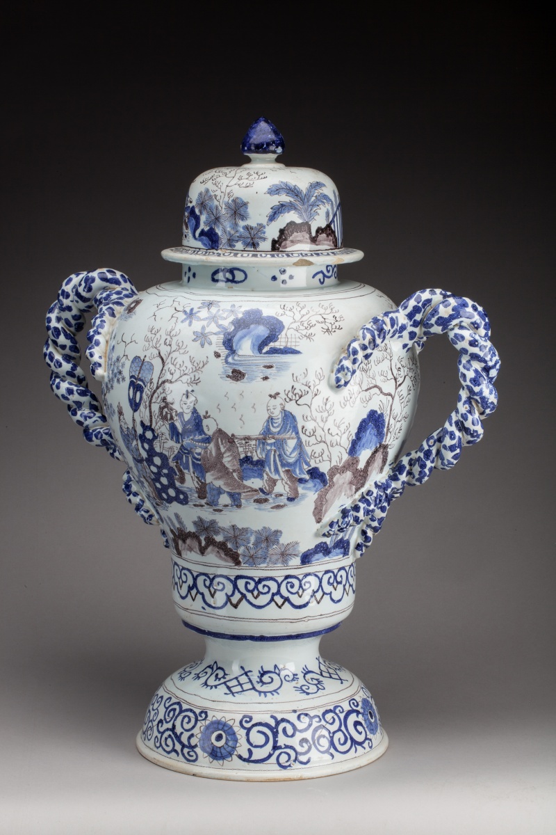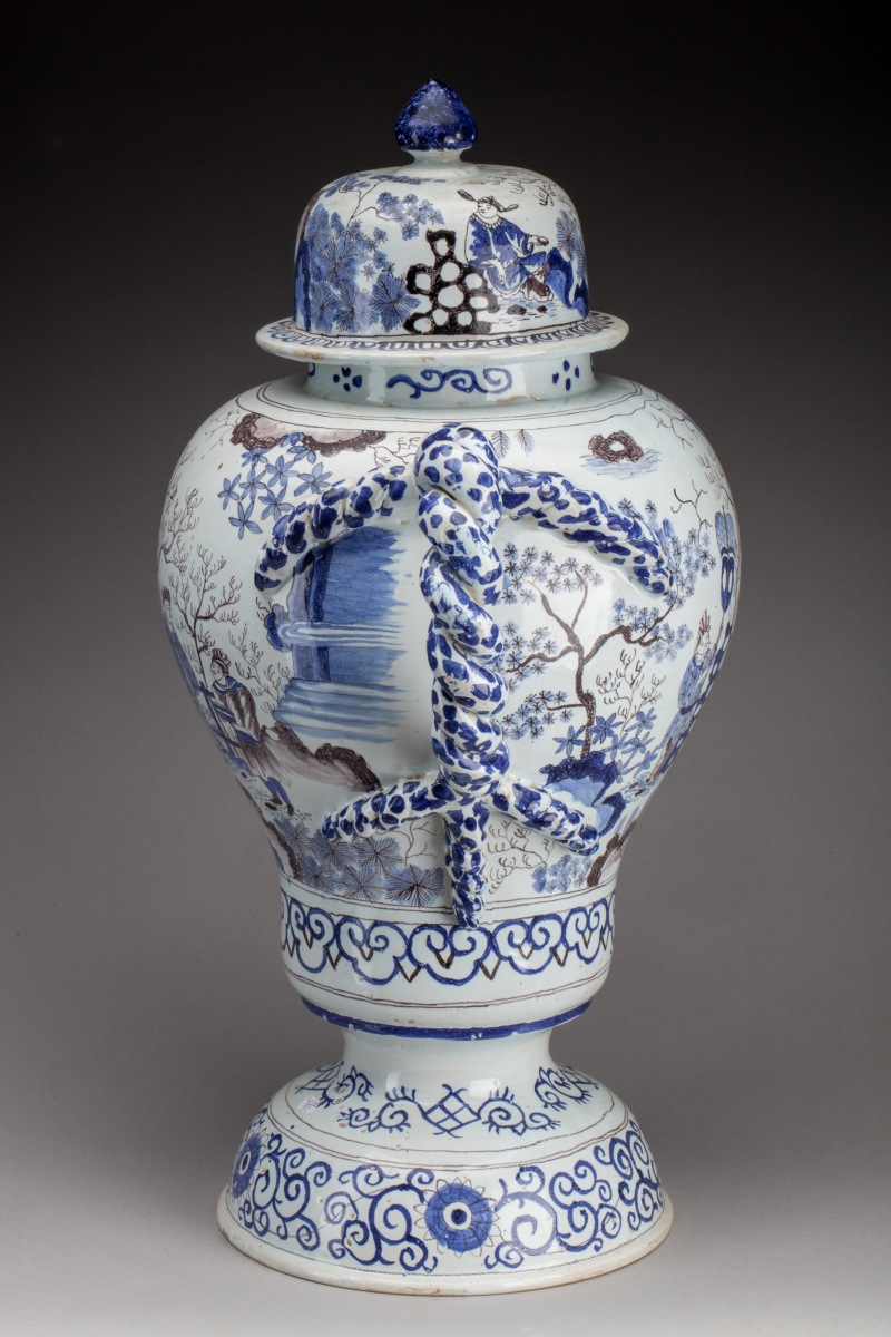 Bibliographie: "L'oeuvre des faïenciers français du XVIe à la fin du XVIIIe siècle", Hachette, 1966: un vase d'ornement au décor sinisant et aux anses torsadées similaires daté de 1670 conservé au Musée de Nevers est reproduit p. 78.