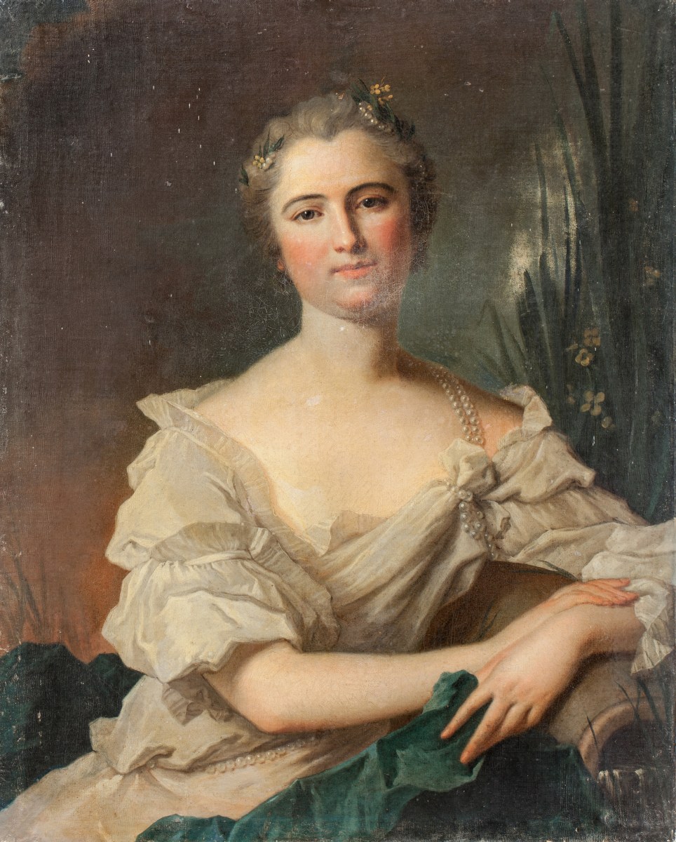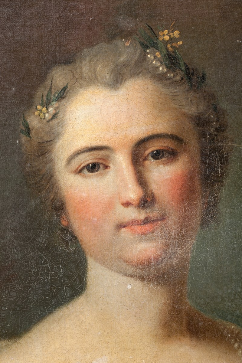 French SCHOOL after Jean-Marc NATTIER. Portrait of a woman with a pearl necklace. Canvas.