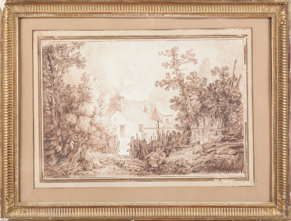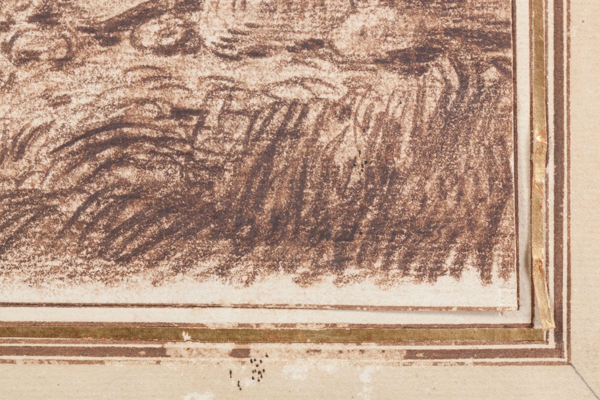 Pierre brune, estompe signée et datée en bas à droite "JB Huet 1775".