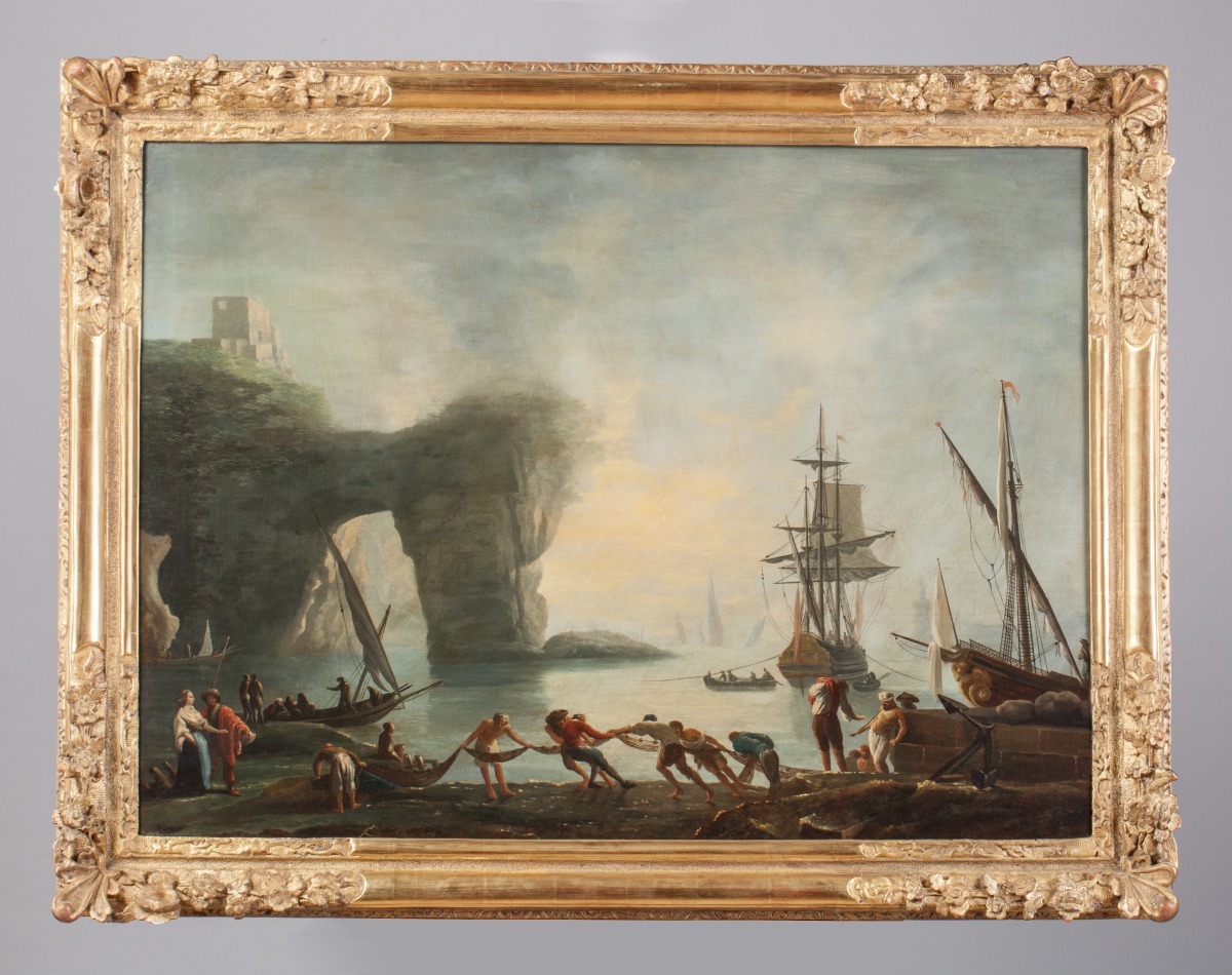 Follower of Claude Joseph VERNET. Fishermen picking up their net. Canvas.