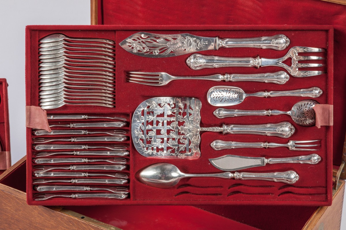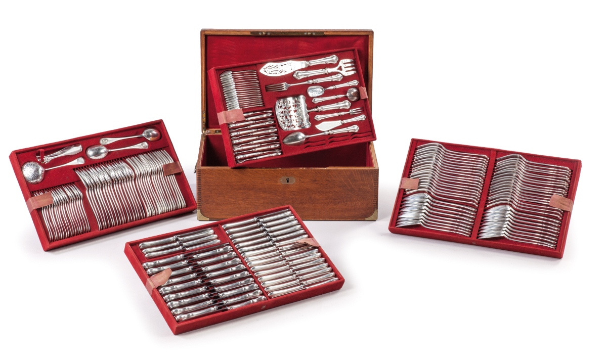 Importante MÉNAGÈRE en argent de 205 pièces, modèle filets-contours à...