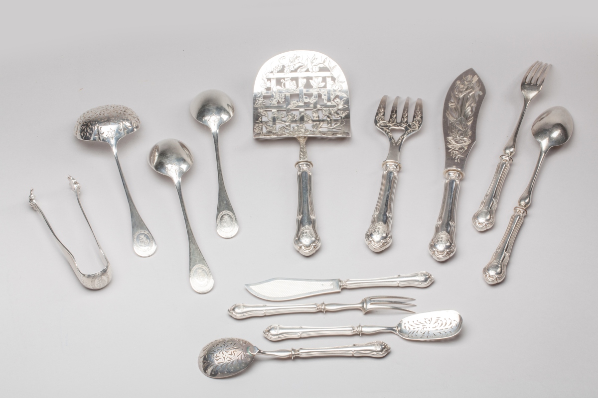 A french SILVER FLATWARE SET. Louis XV style. Late 19th century.