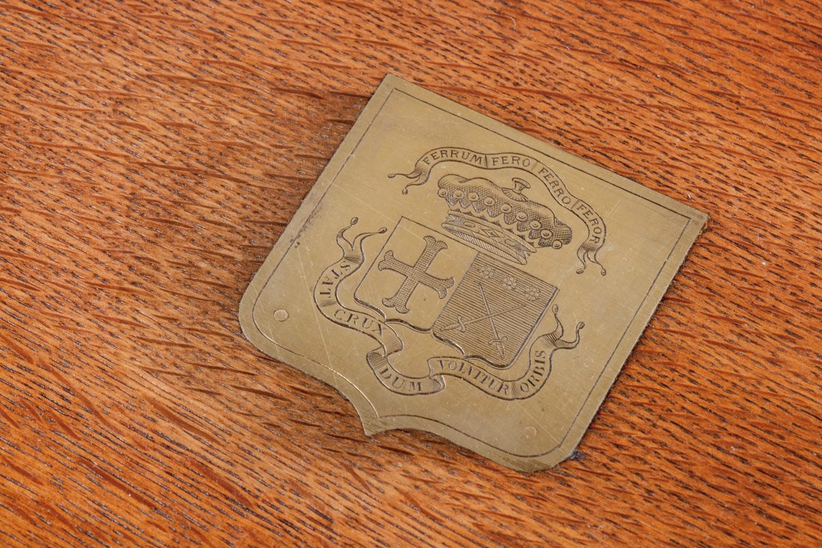 Maître-orfèvre: P, une crosse (?), Q. La serrure du coffre gravée "G. Bachelier, Orfèvre, Succr de Cosson-Corby / 13, Place du Pont-Neuf, Paris / Médailles d'Argent / aux Expositions Univelles / de 1855, 1867 et 1878".