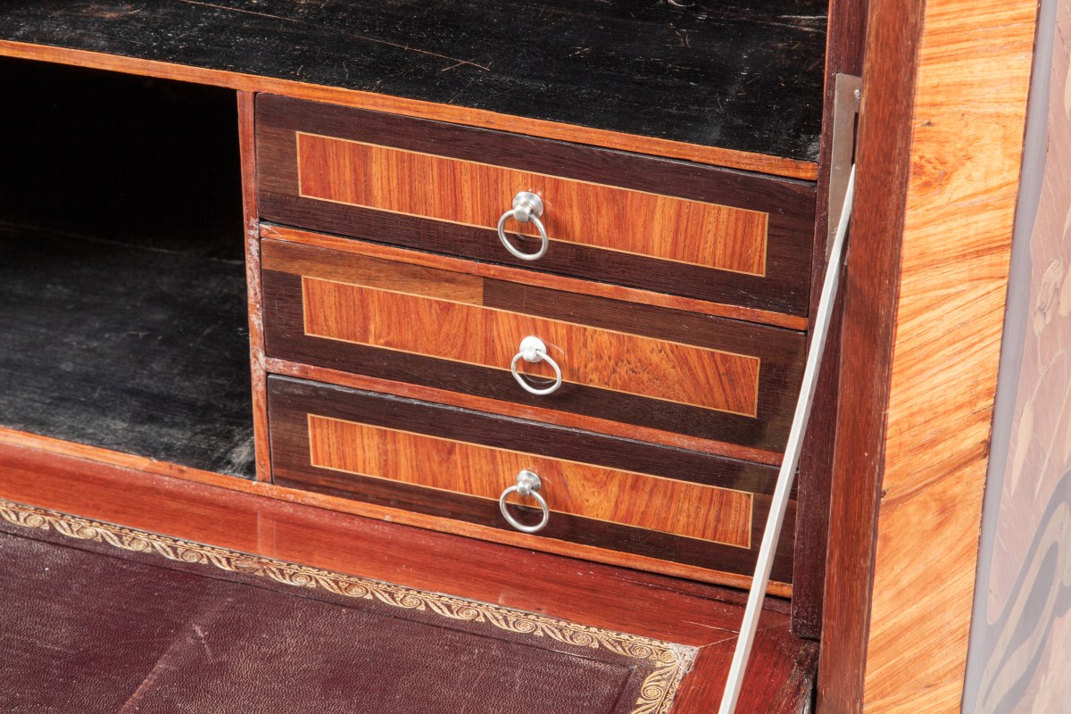 SECRÉTAIRE DROIT en placage de bois de violette, satiné, amarante,...