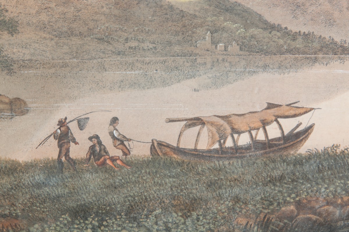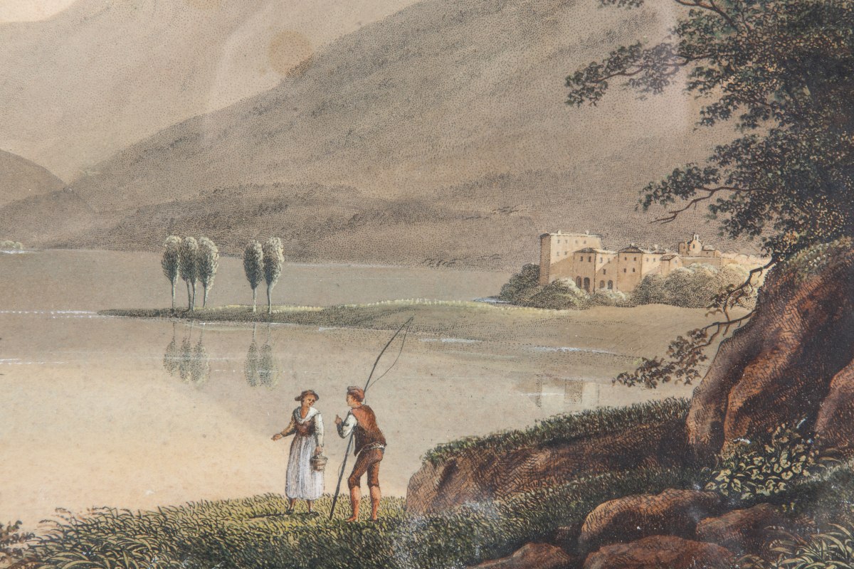 Johann Heinrich BLEULER. Two animated fluvial landscapes. Hand colored lithography. One of them signed, dated 1811 and located.