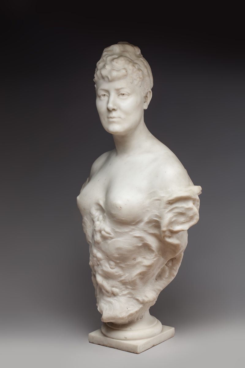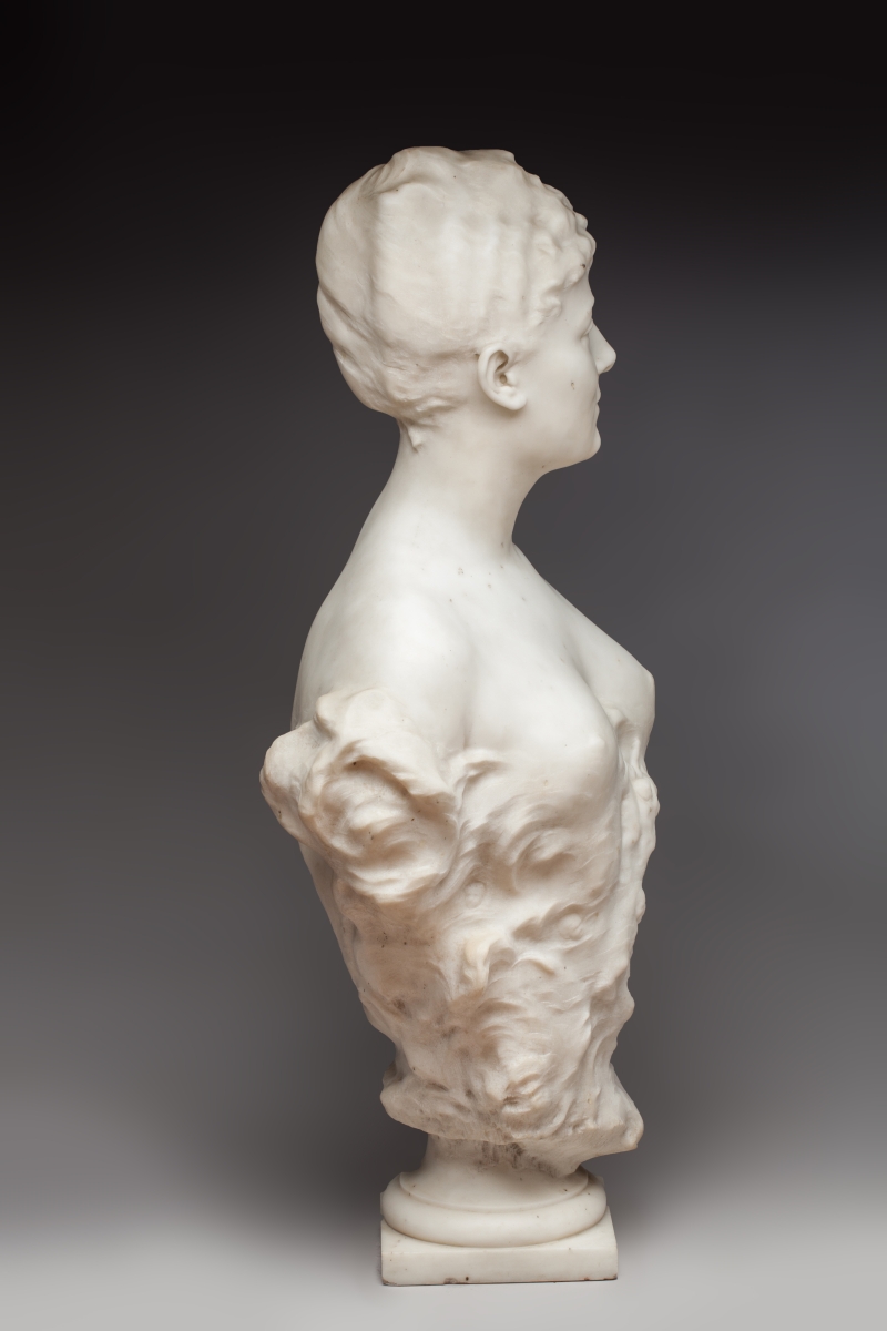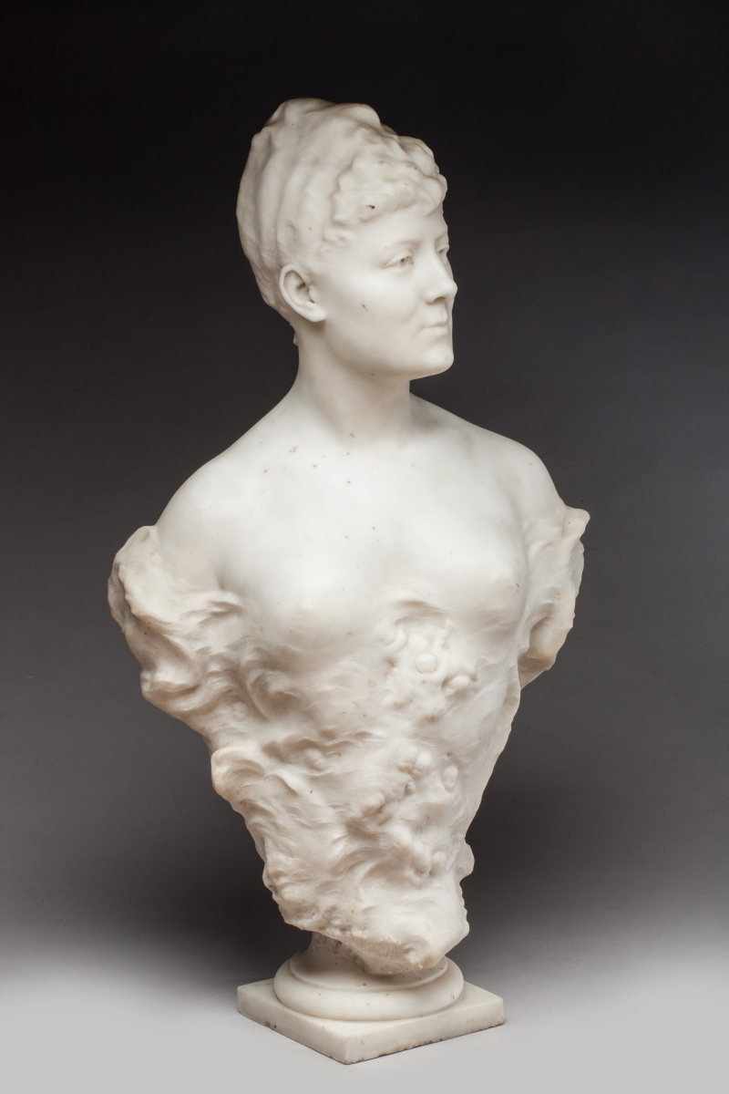 Marble bust of Delphine de Lizy with cupids by Anatole MARQUET DE VASSELOT. Signed and dated 1889.