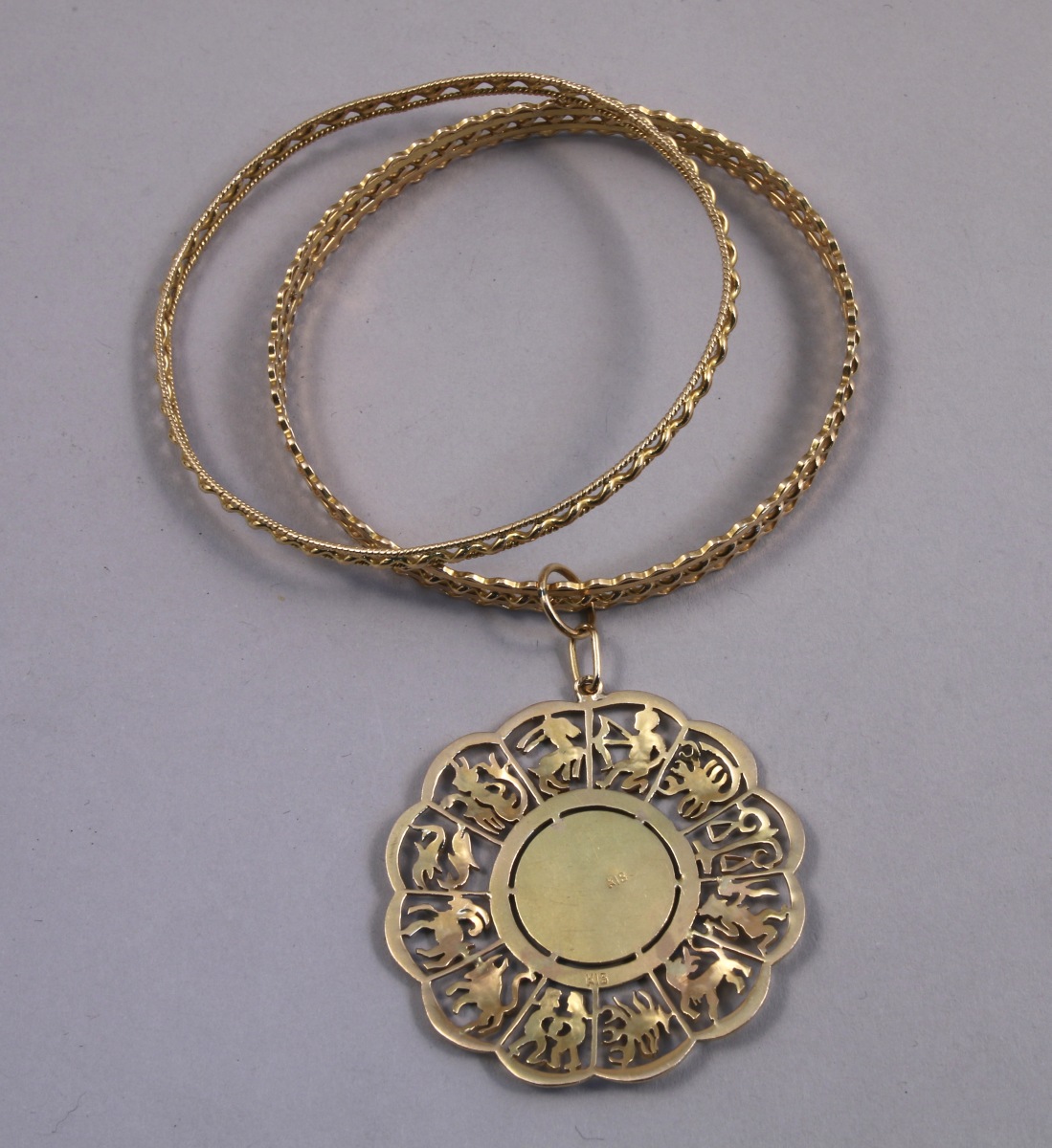 2 BRACELETS et 1 MÉDAILLON aux SIGNES DU ZODIAQUE en or jaune.