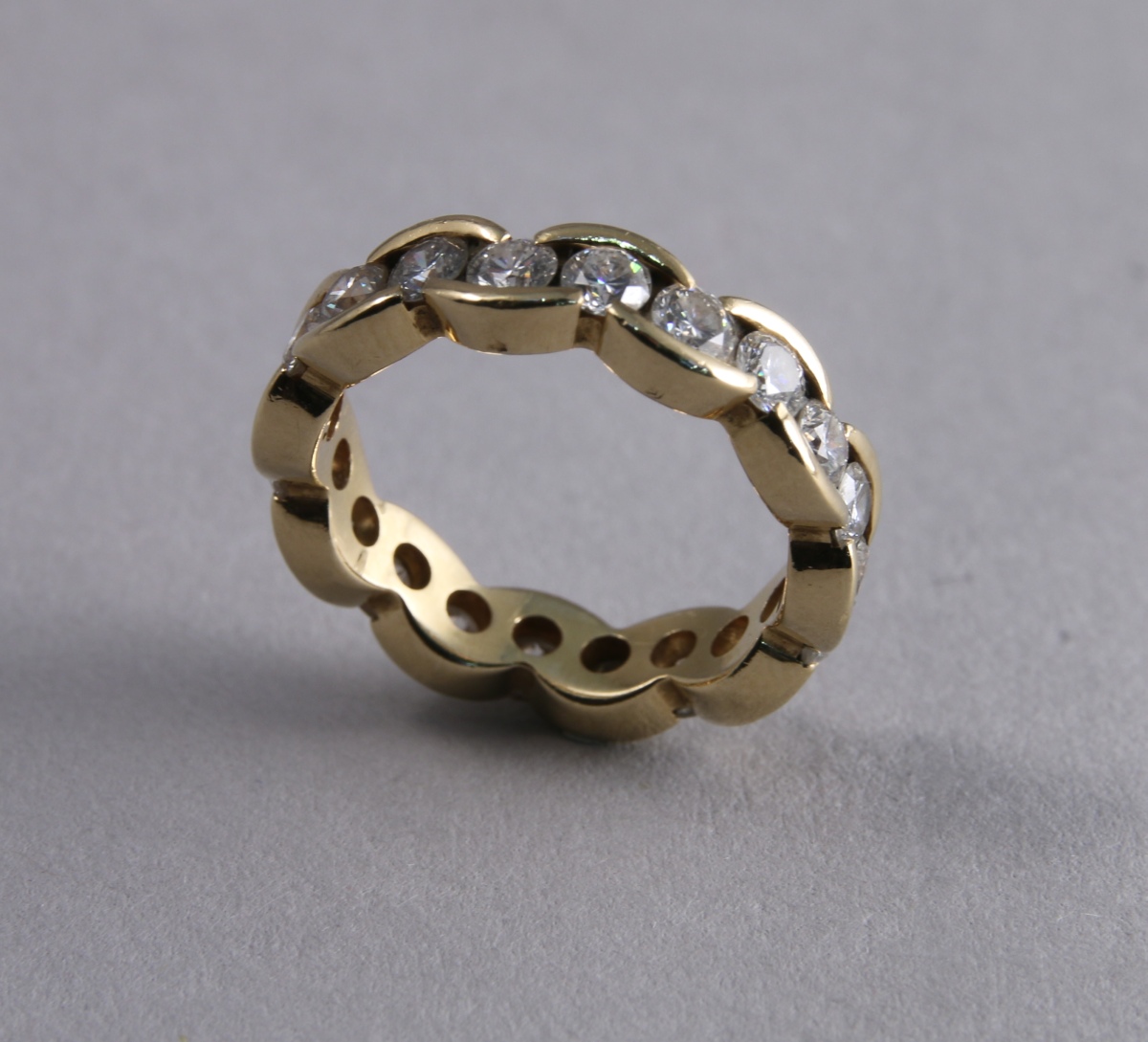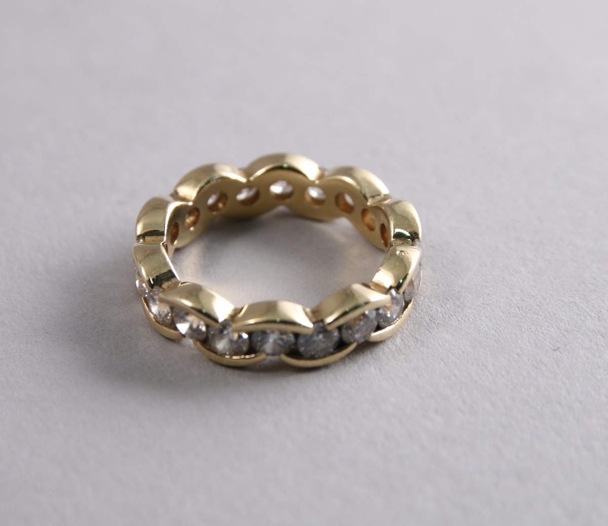 ALLIANCE américaine de forme ondée en or jaune sertie de 20 DIAMANTS.