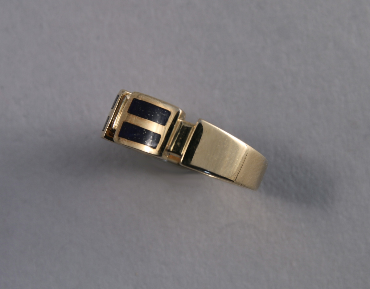 BAGUE en or jaune géométrisante ornée de quatre plaques de LAPIS-LAZULI.