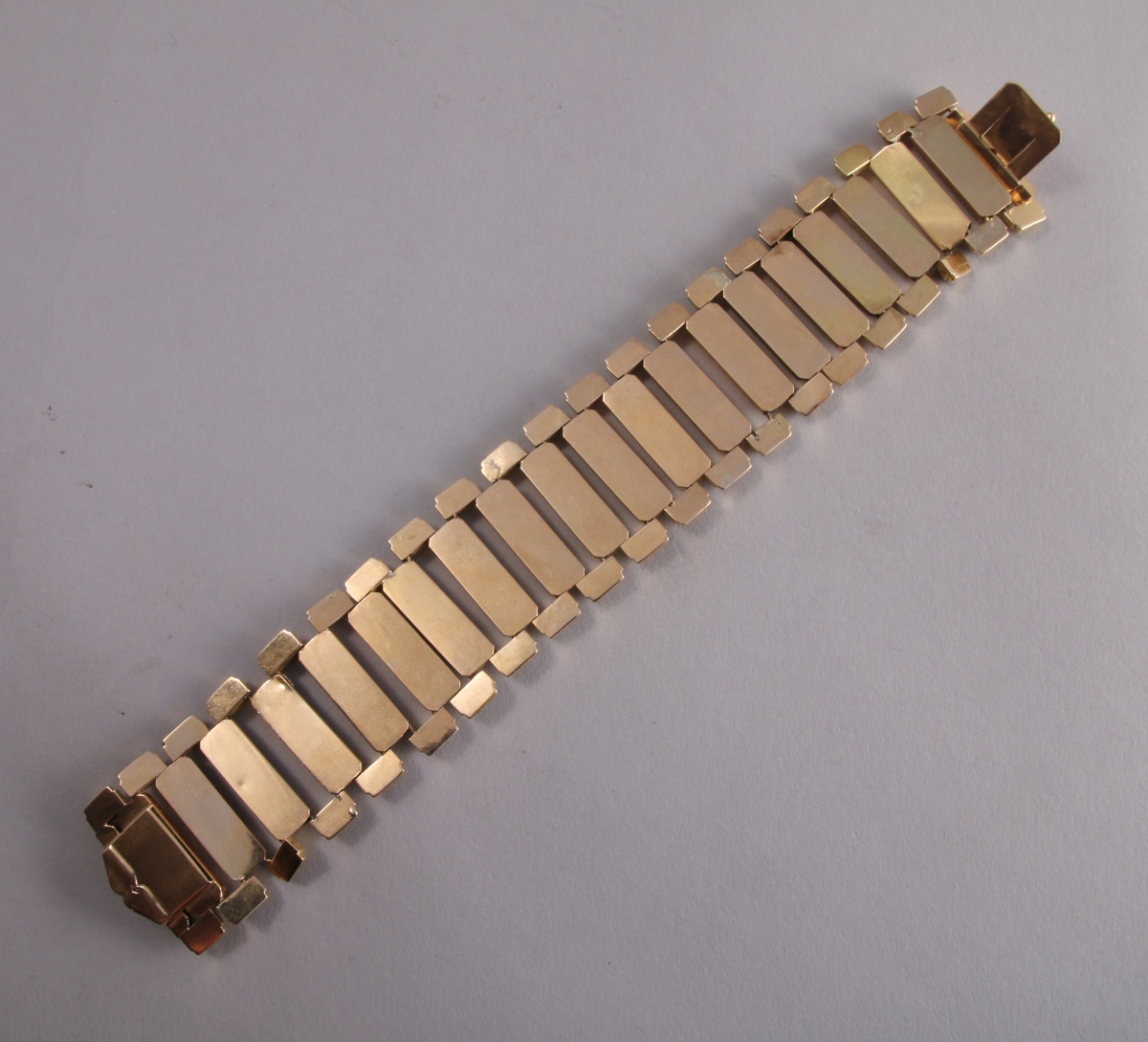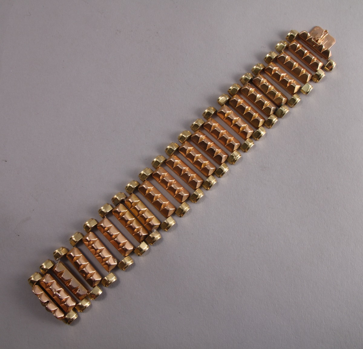 BRACELET TANK à maille articulée, deux ors, rose et jaune 14k.