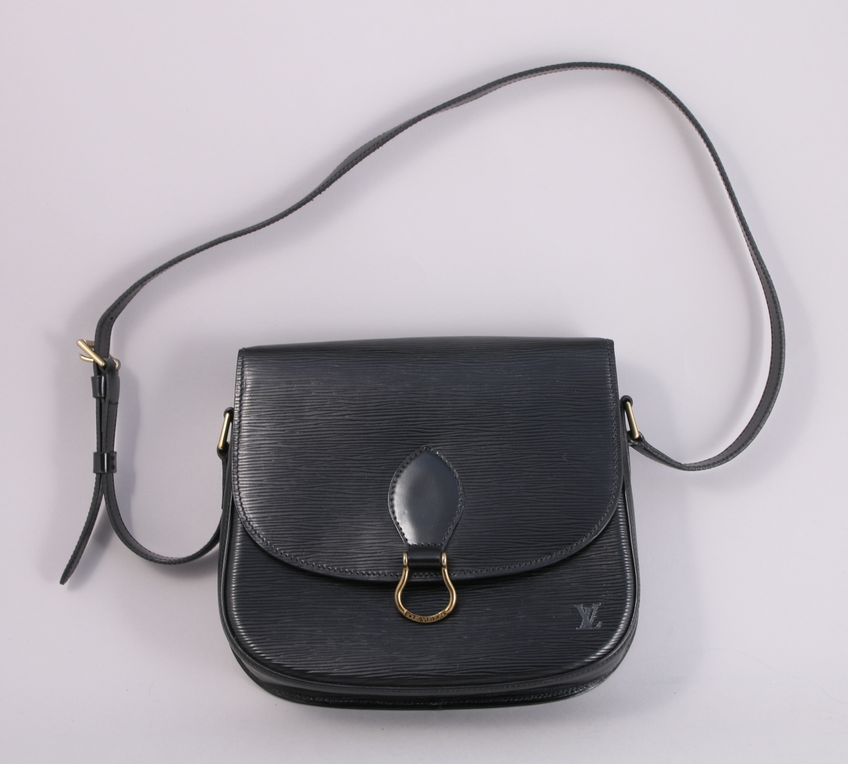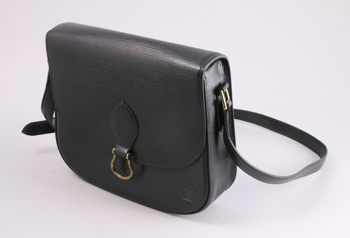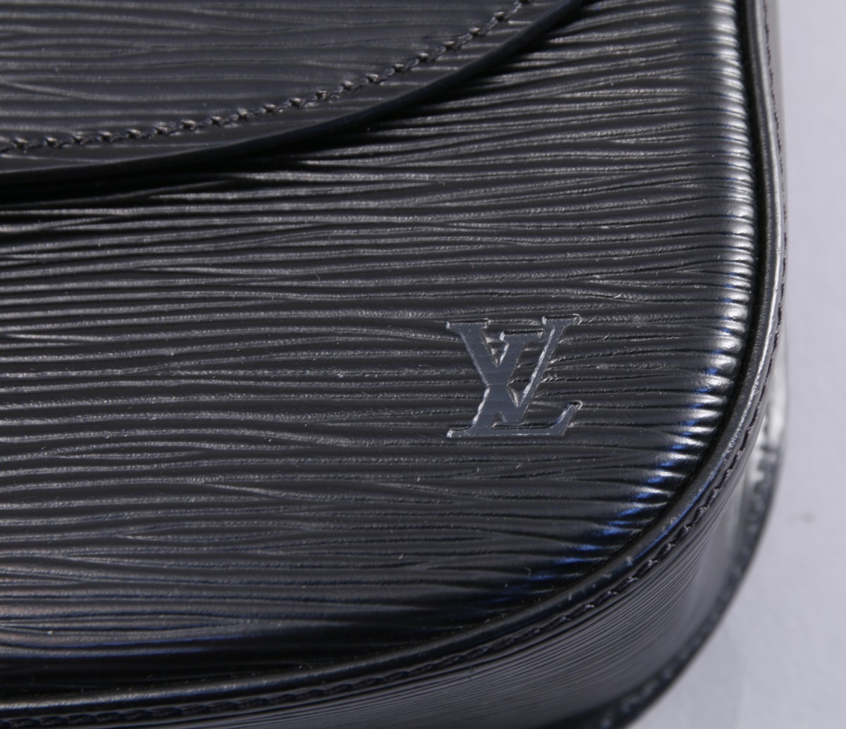 Louis VUITTON. SAC à main SAINT-CLOUD en cuir épi noir avec bandoulière.