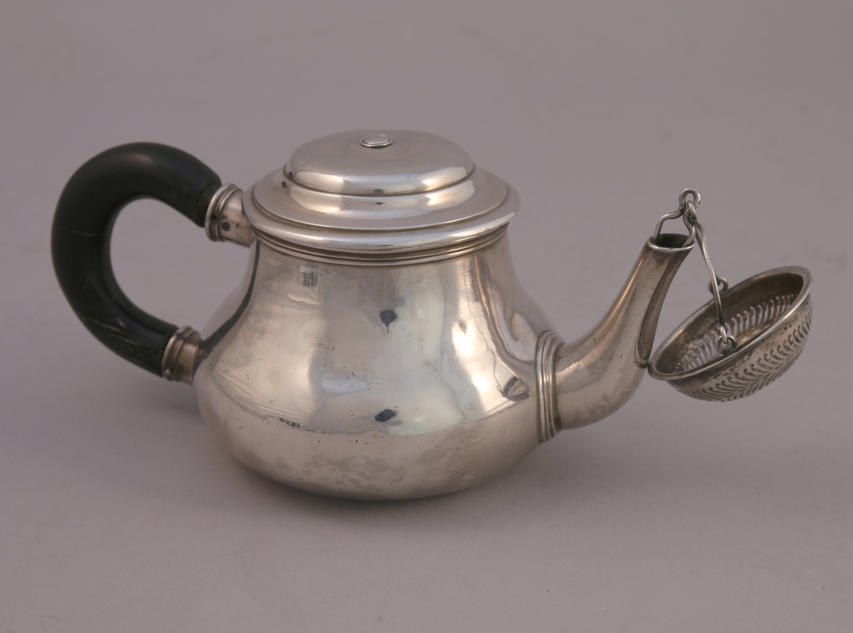 PARIS. THÉIÈRE égoïste en argent uni. Le col et l'attache du bec verseur ornés de filets. Anse en bois noirci rapportée.