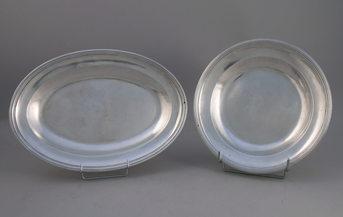 2 PLATS DE SERVICE en argent, la brodure ornée de filets: