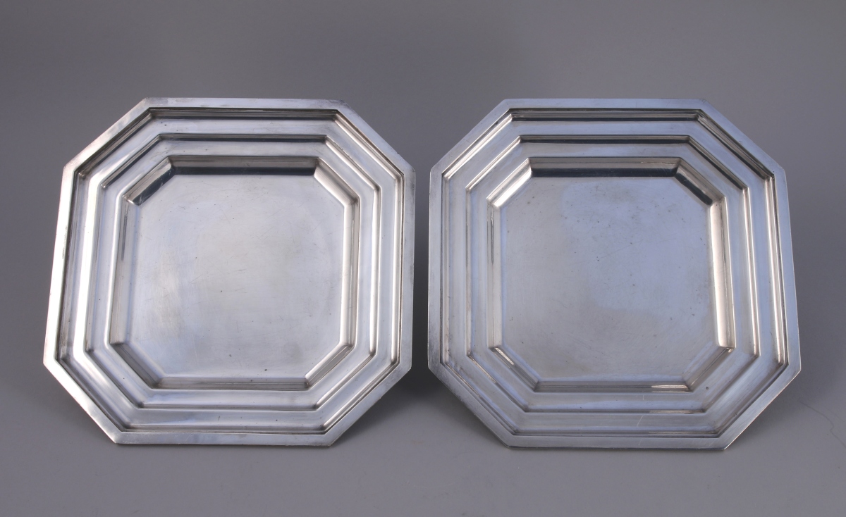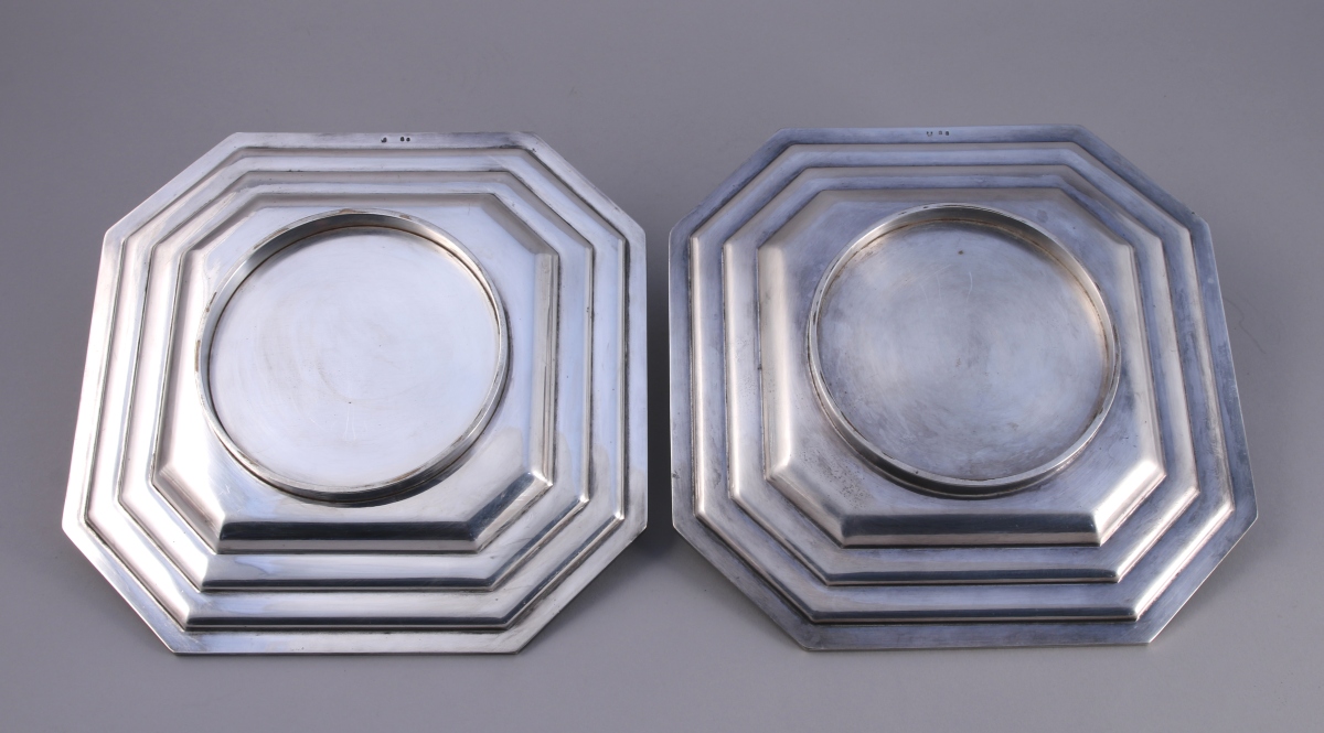 - La PAIRE DE PLATS de forme octogonale. Marly à degrés. XIX-XXe. Larg. 23,5 cm.