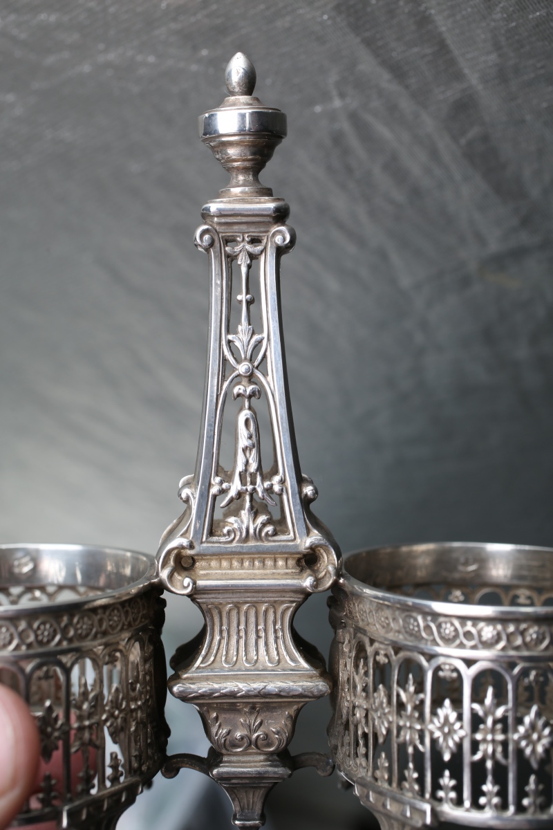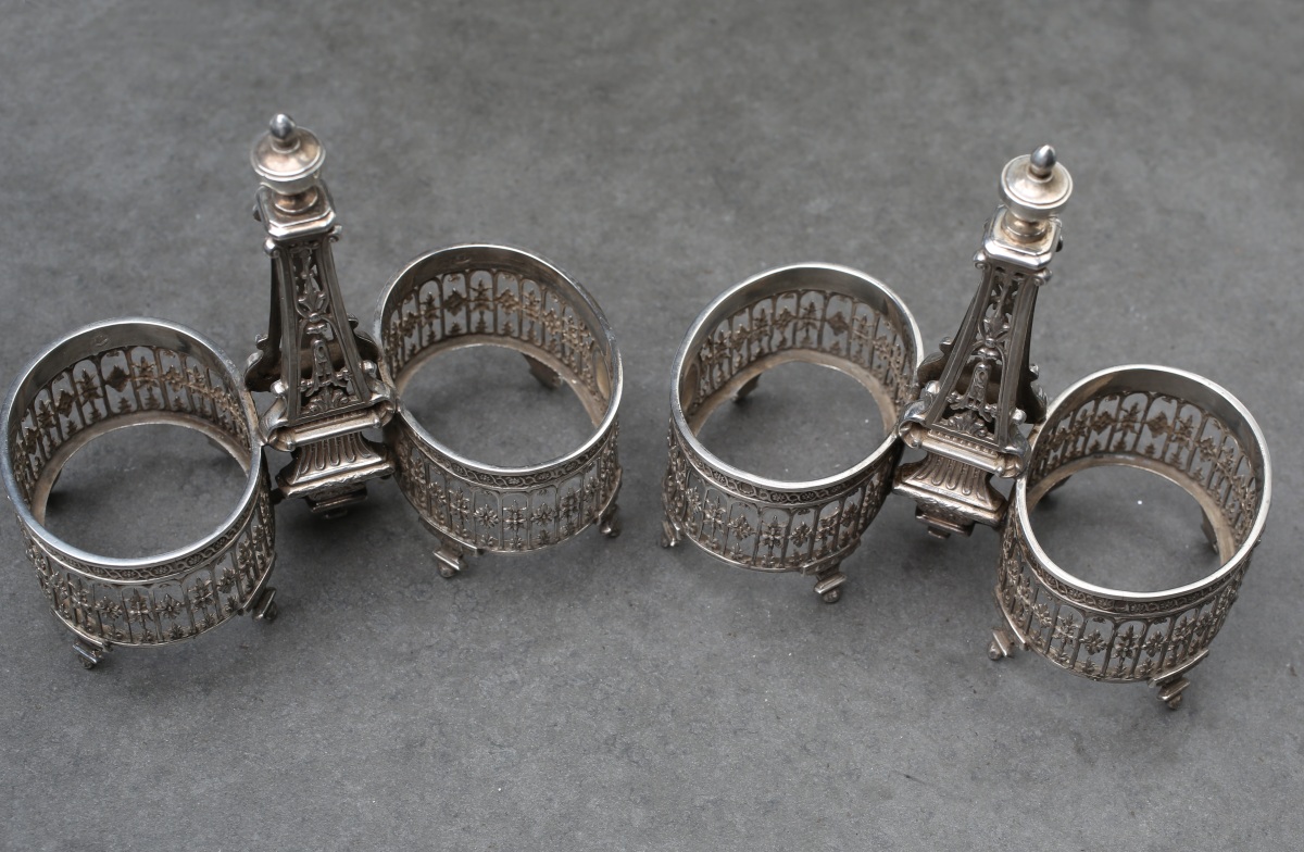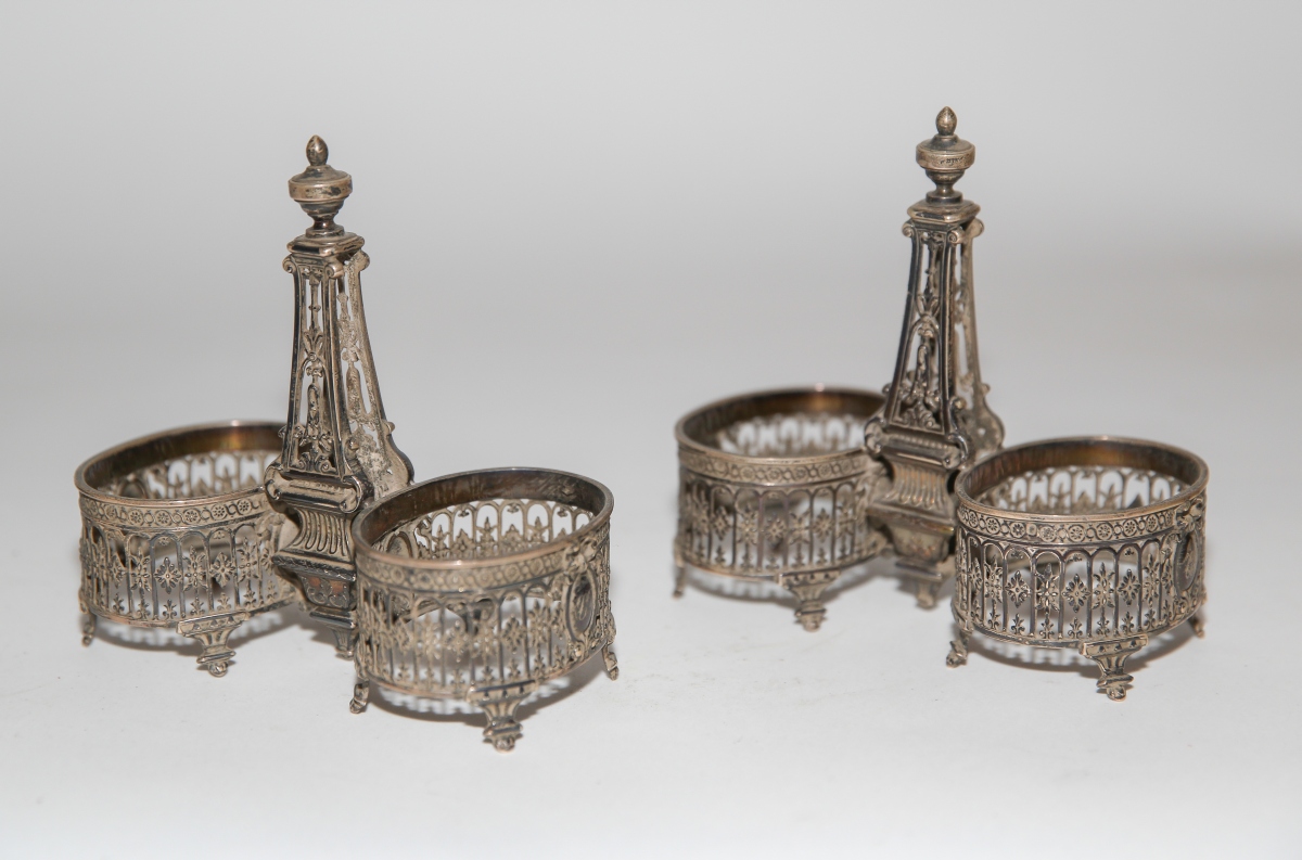 CHRISTOFLE. Paire de SALERONS double en argent de Style Louis XVI. Poinçon Minerve.