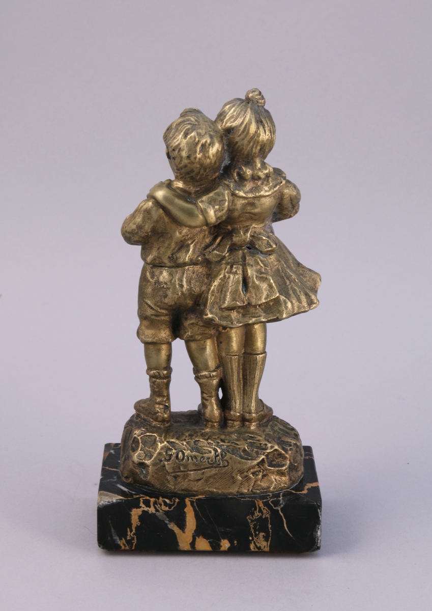 Sur un SOCLE rectangulaire en marbre noir veiné. Haut. totale 20, 5 cm.