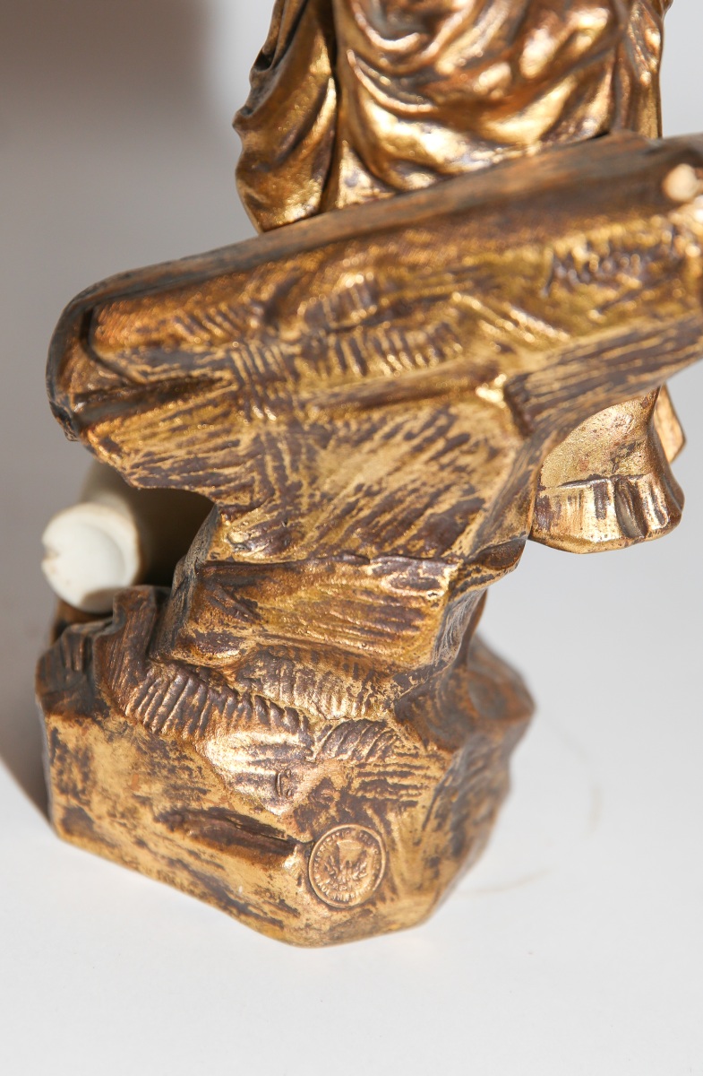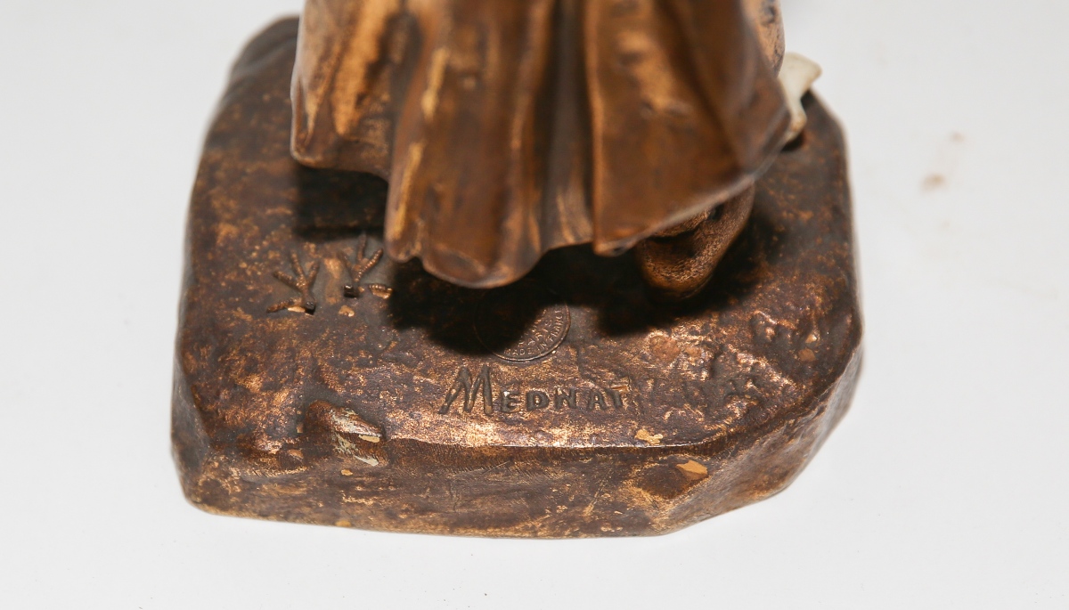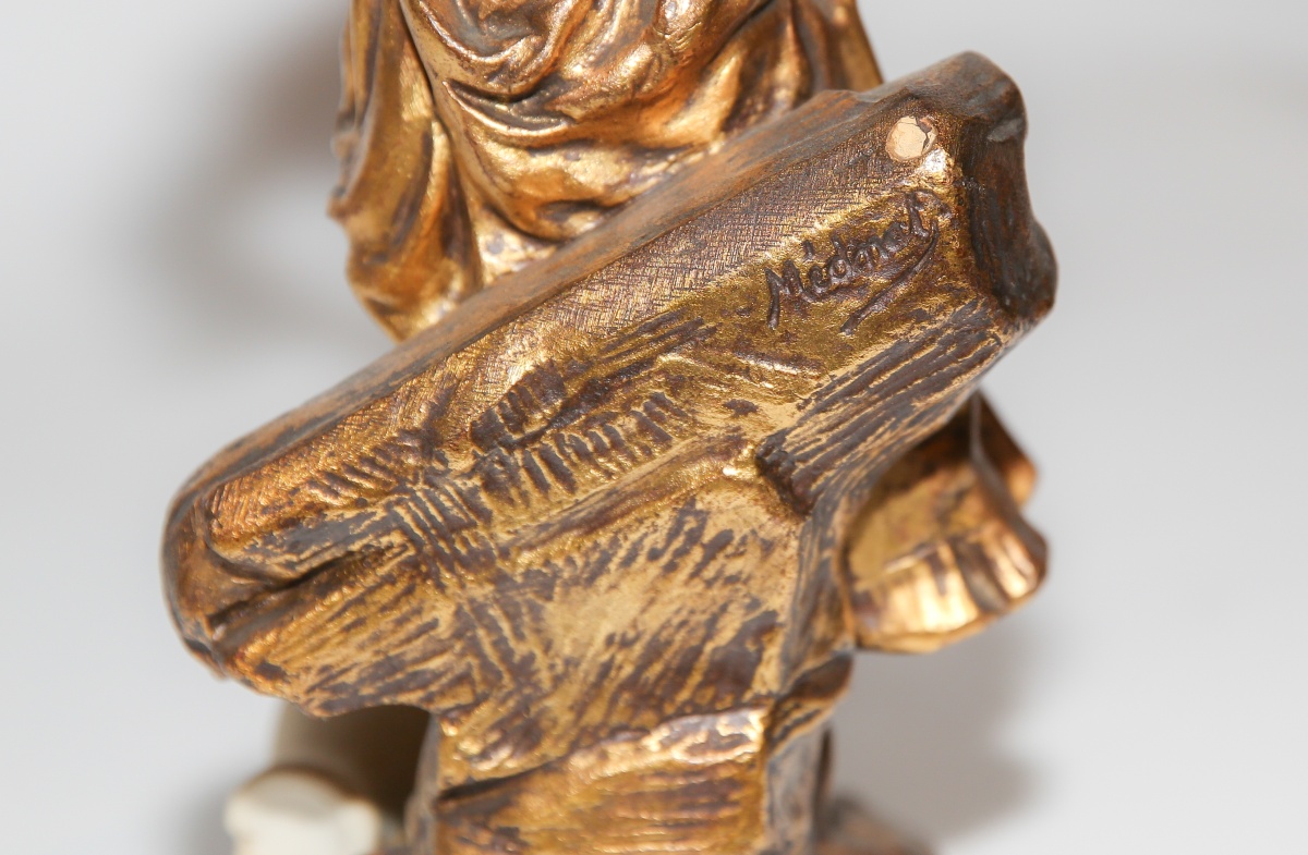 Deux biscuits et régule doré titré sur une plaque et signé "Mednai".