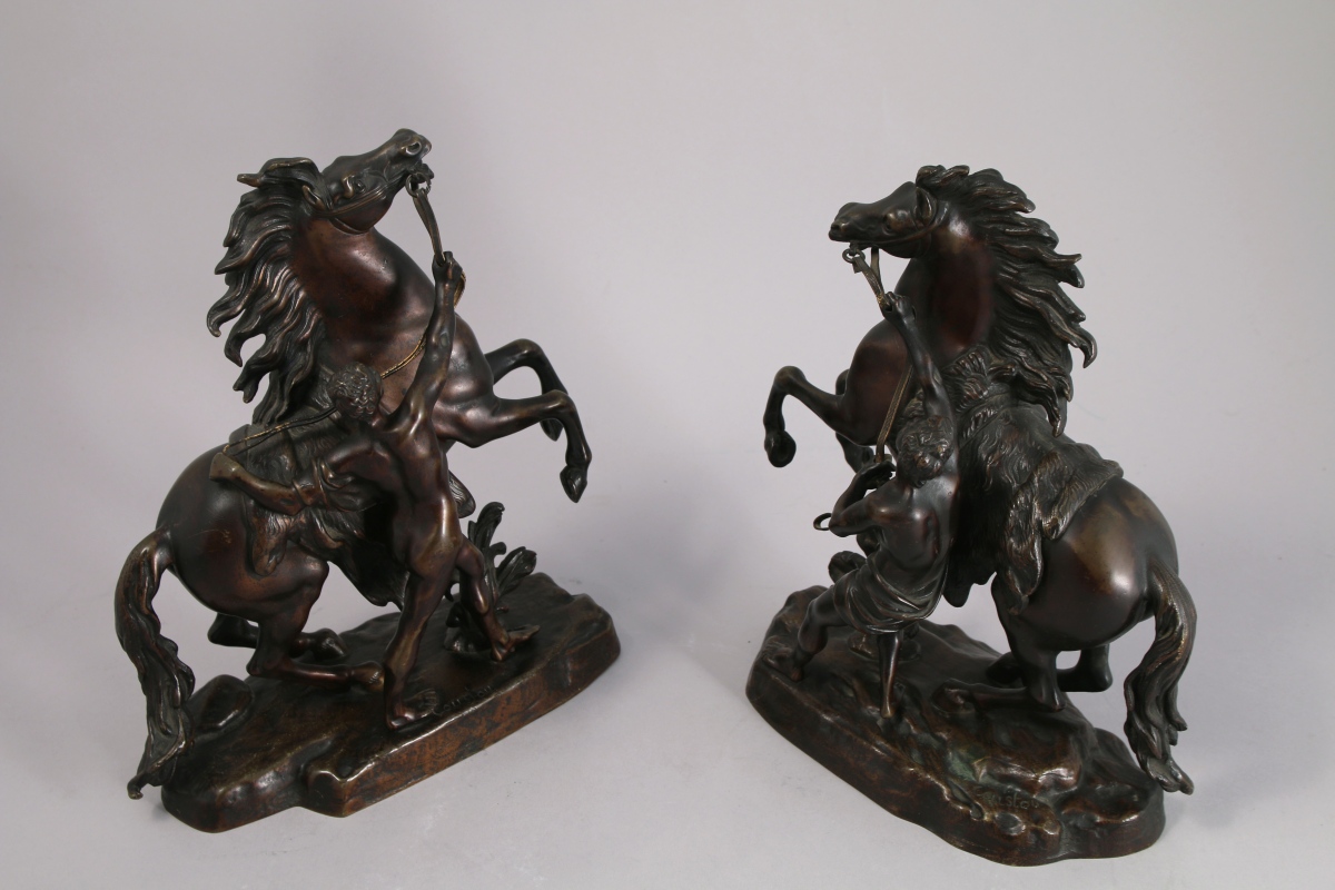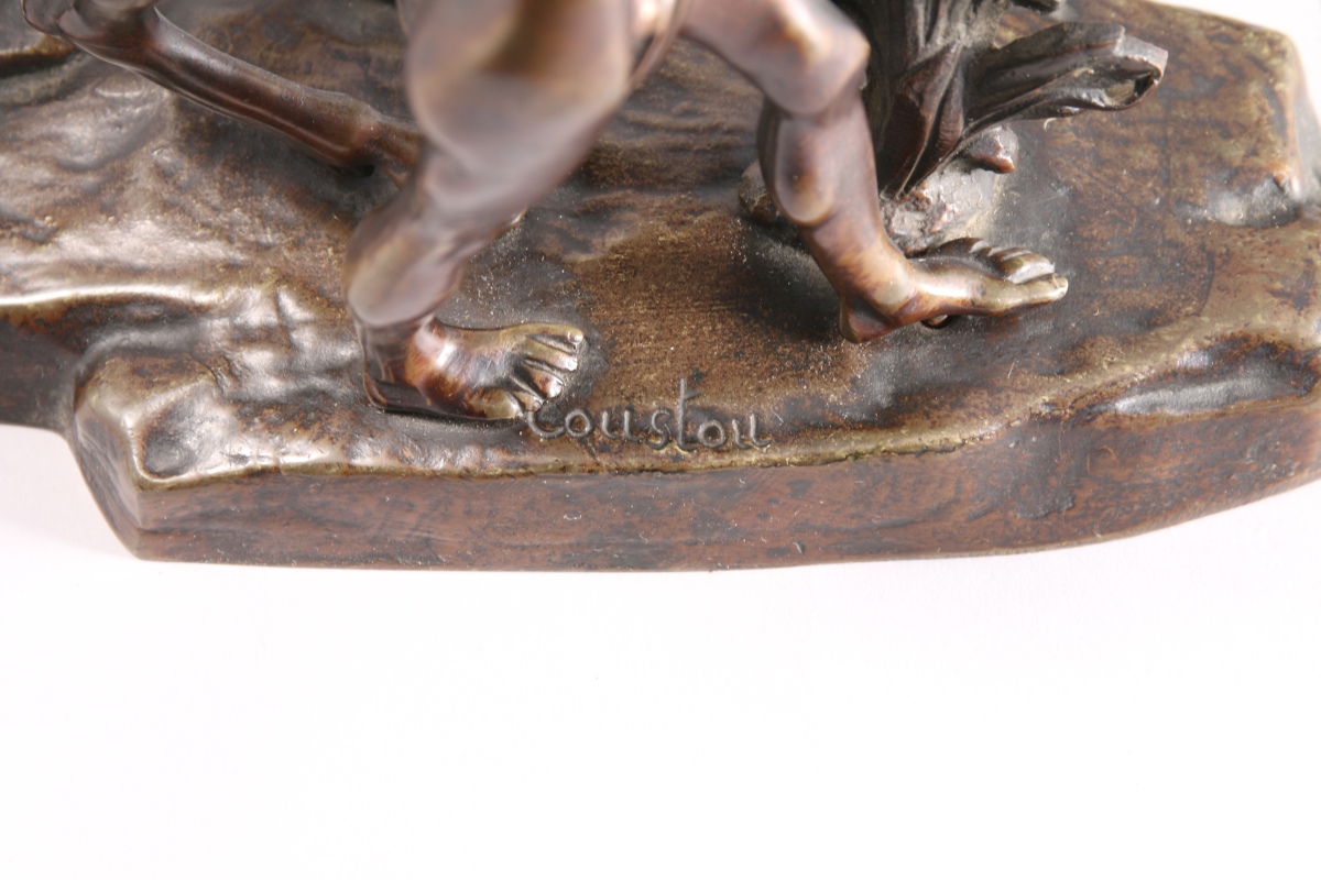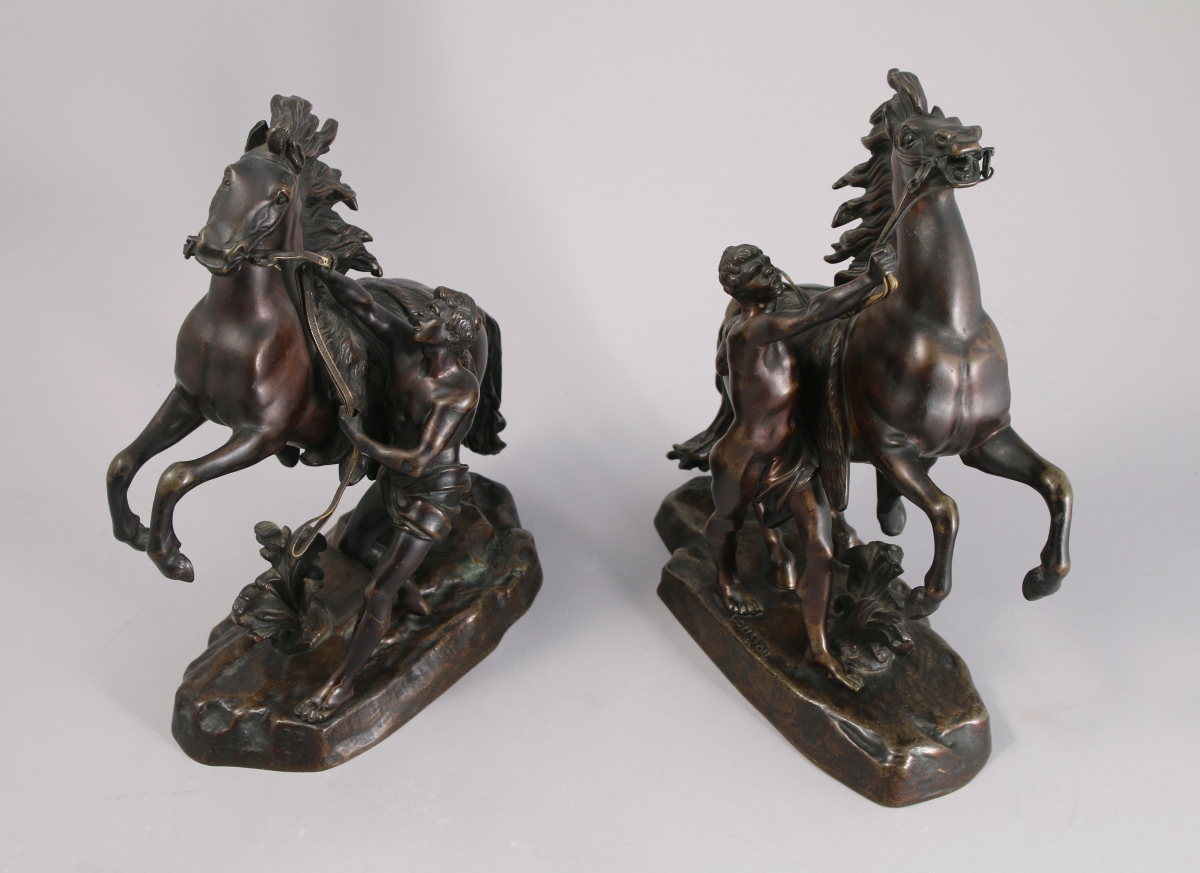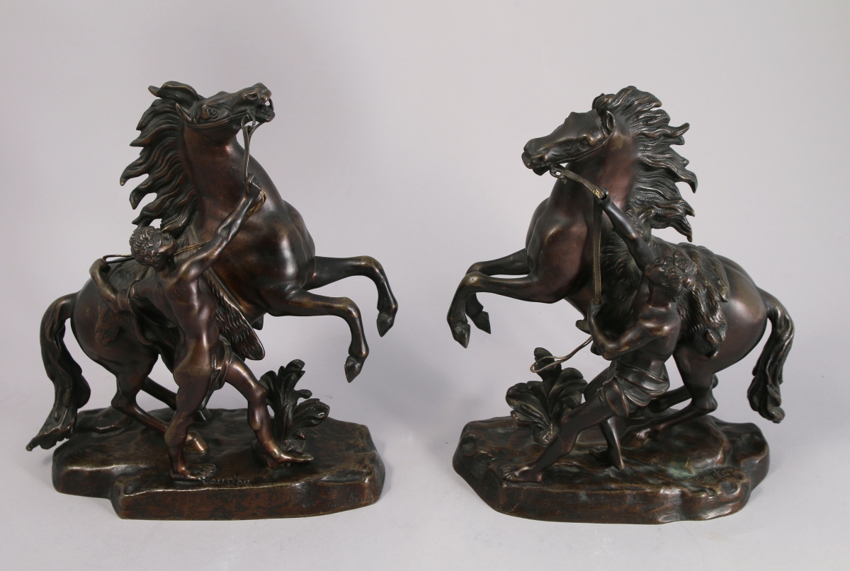 Paire de bronzes à patine mordorée. Ils portent la signature "Coustou" sur la base.