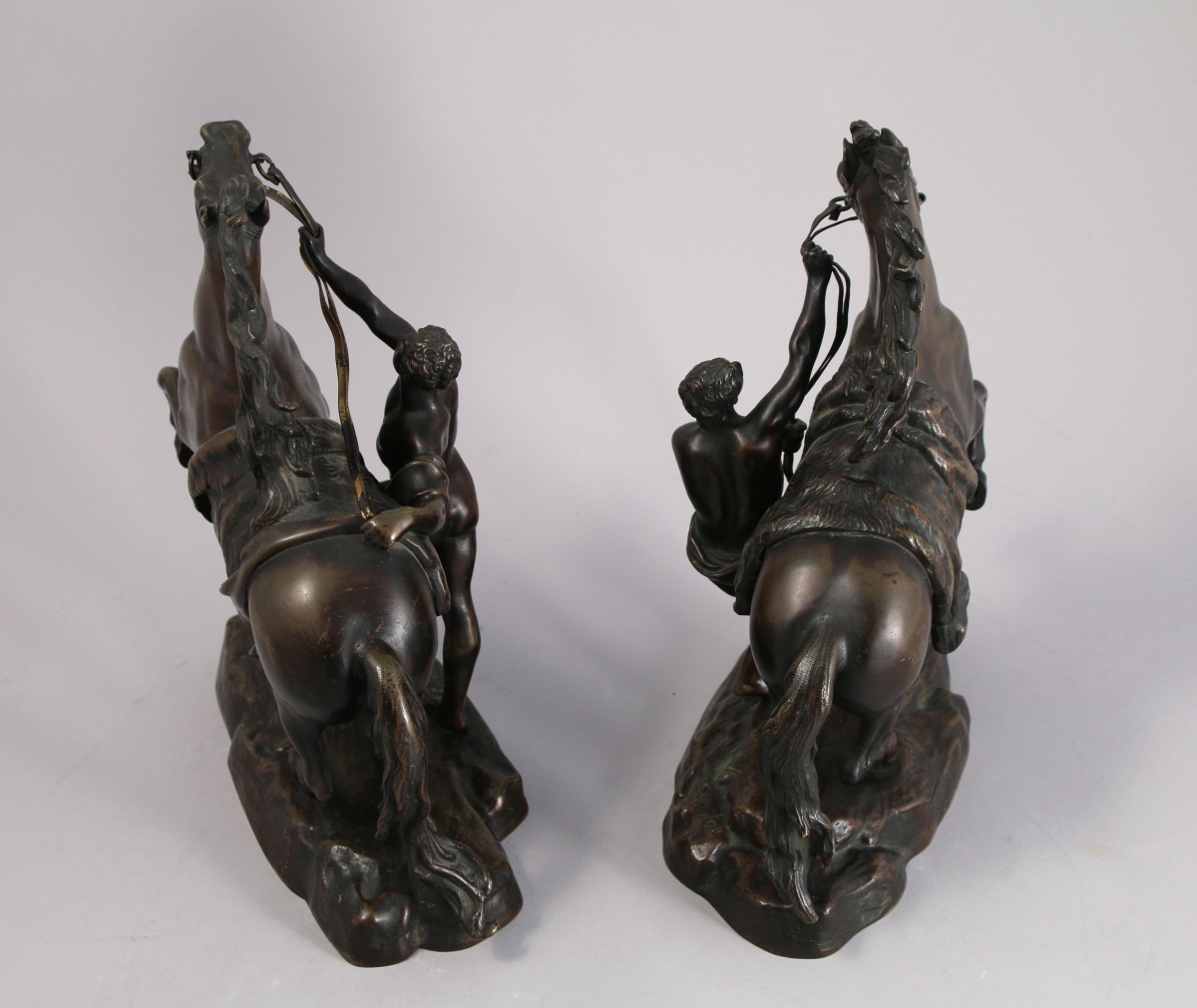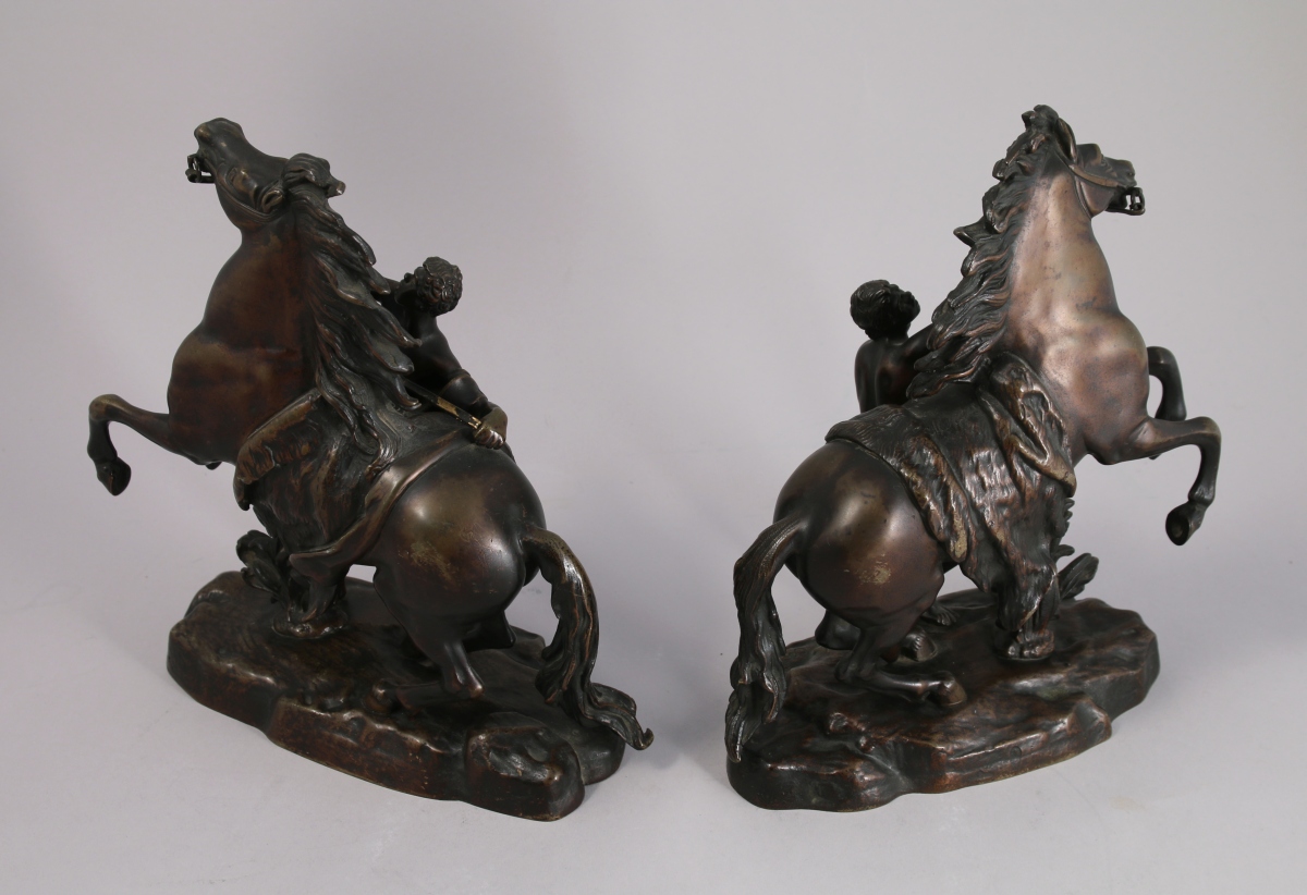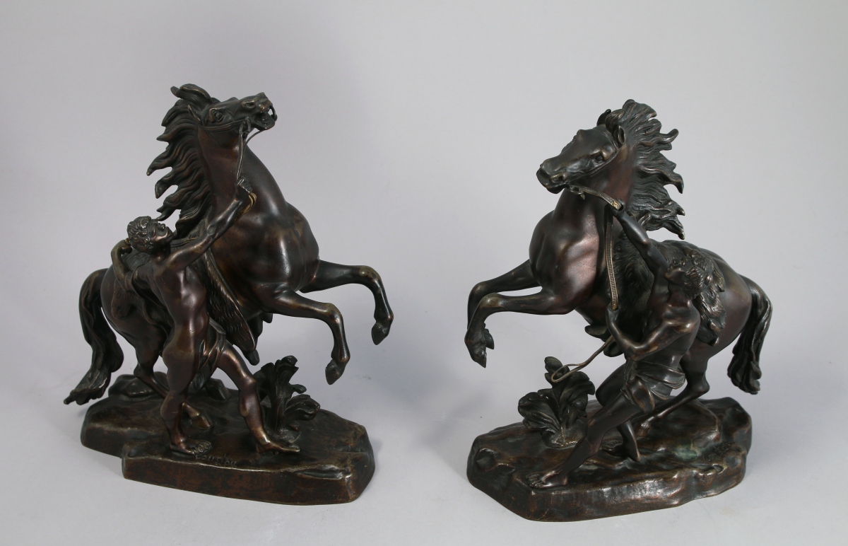 Paire de bronzes à patine mordorée. Ils portent la signature "Coustou" sur la base.