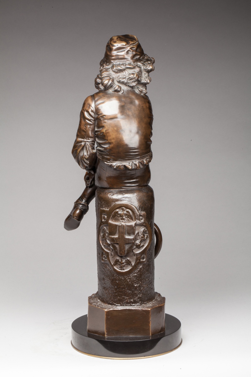 Sur un SOCLE circulaire de marbre noir cerclé de laiton. Haut. totale: 58,5 cm.