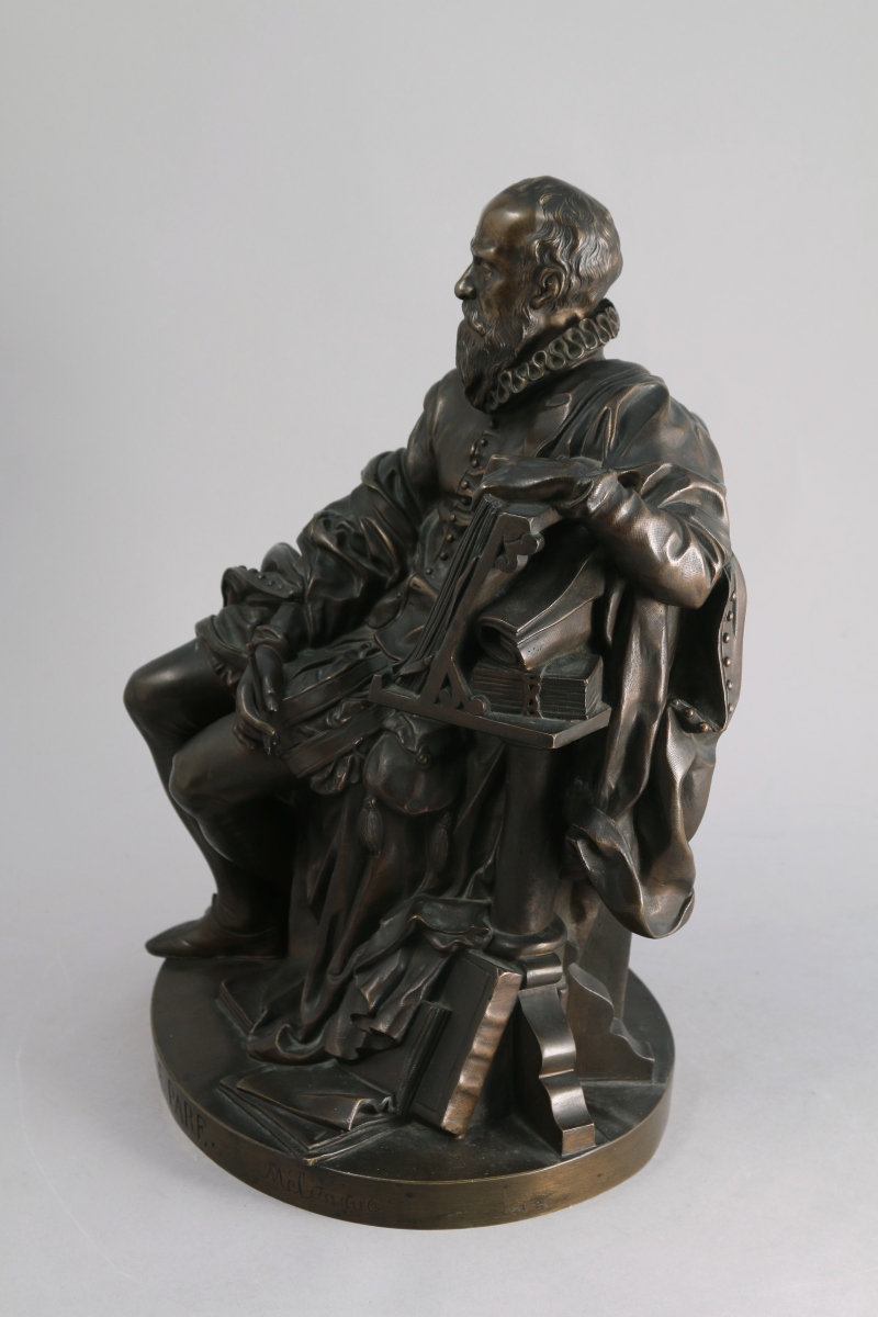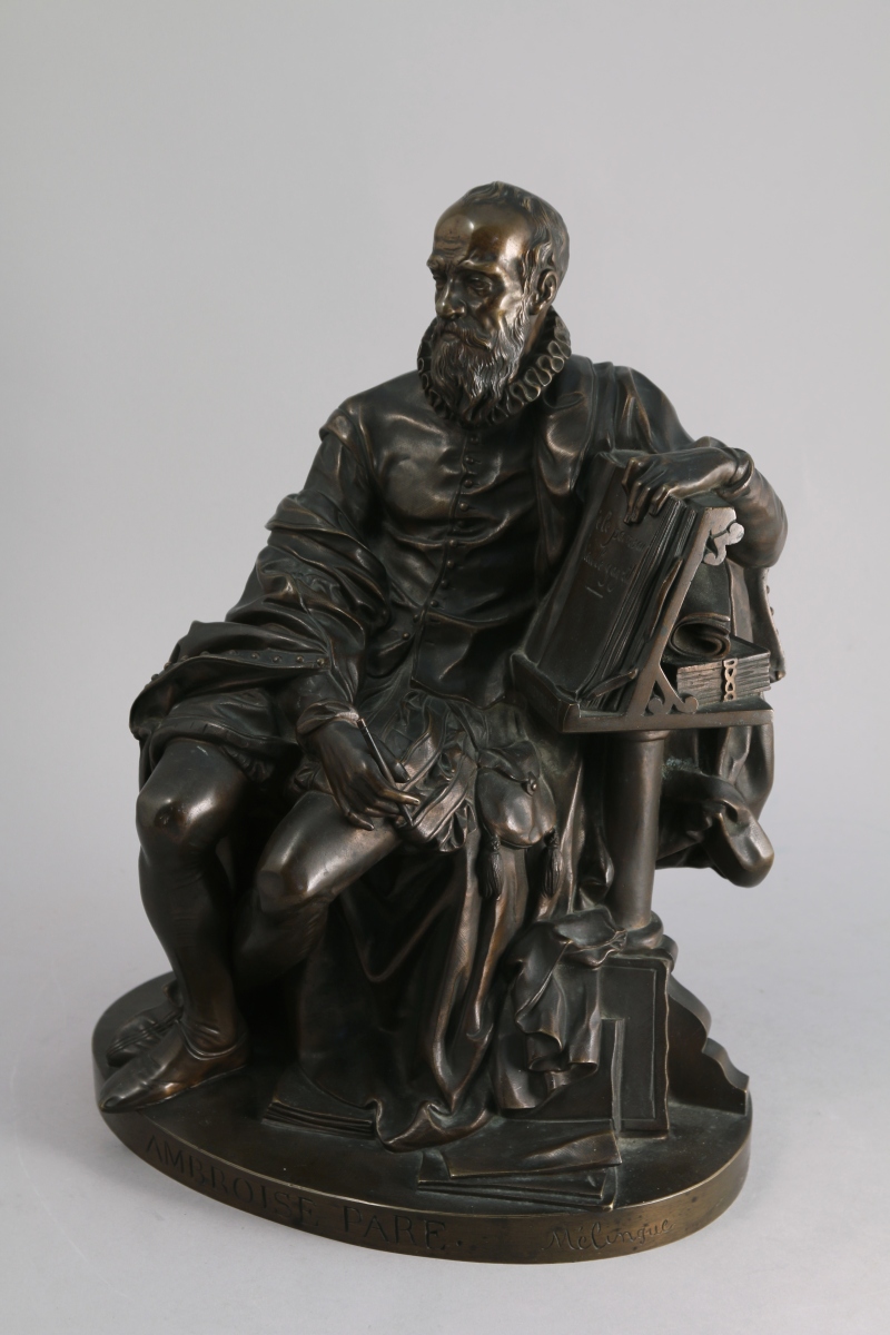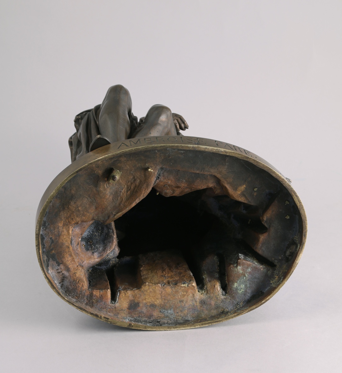 Bronze patiné, titré et signé sur la base, daté "9 décembre 1877". Cachet de fondeur Susse frères".