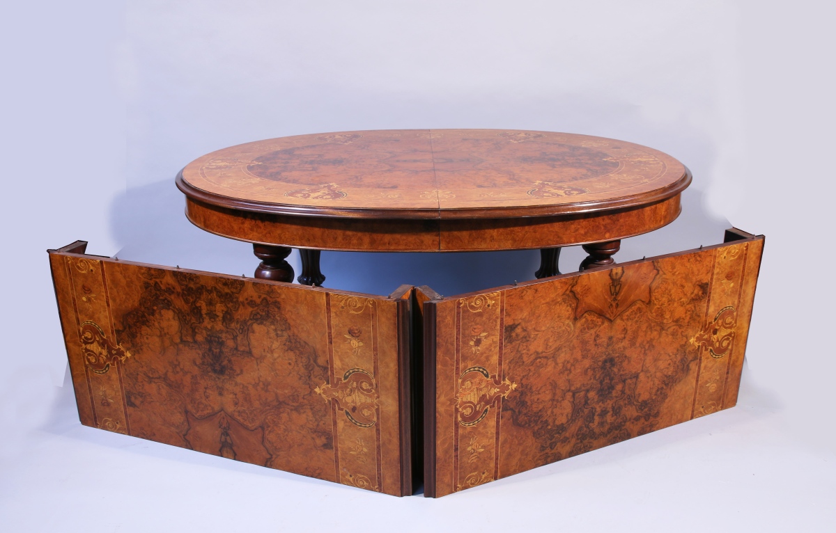 Avec deux rallonges marquetées de même qui mesurent chacune 60 cm.