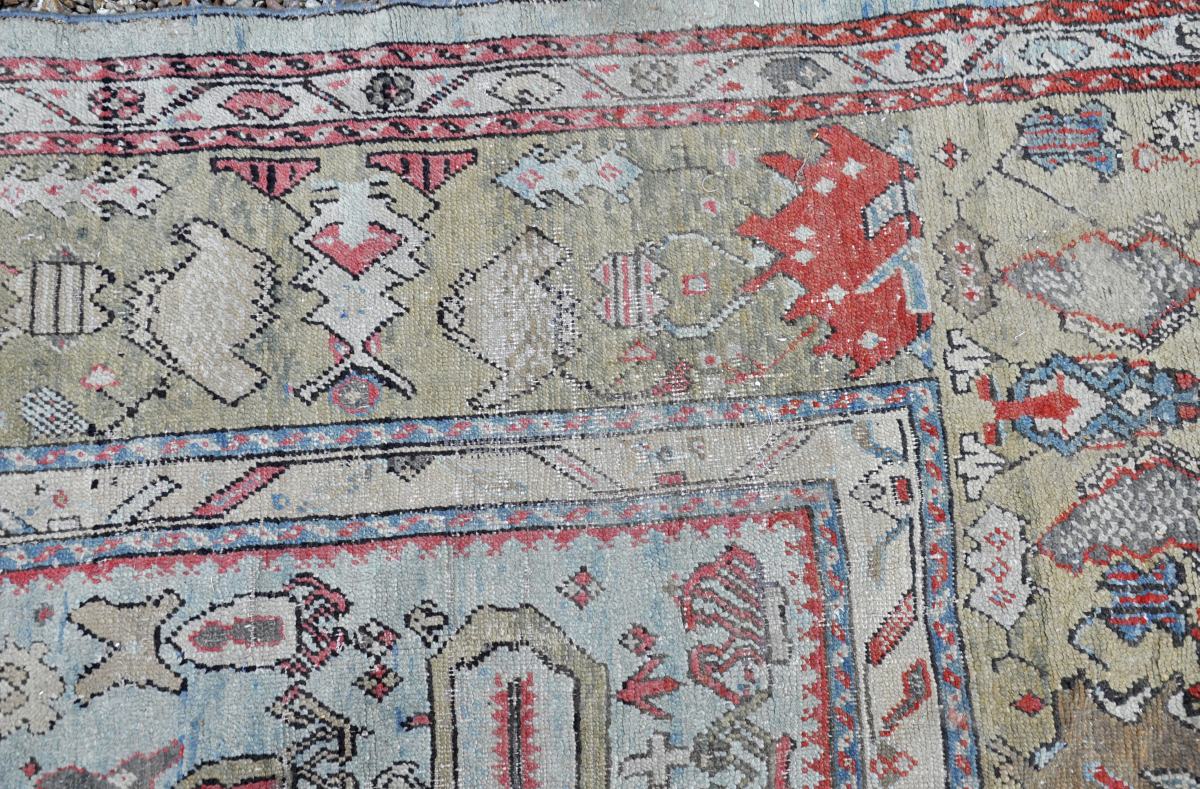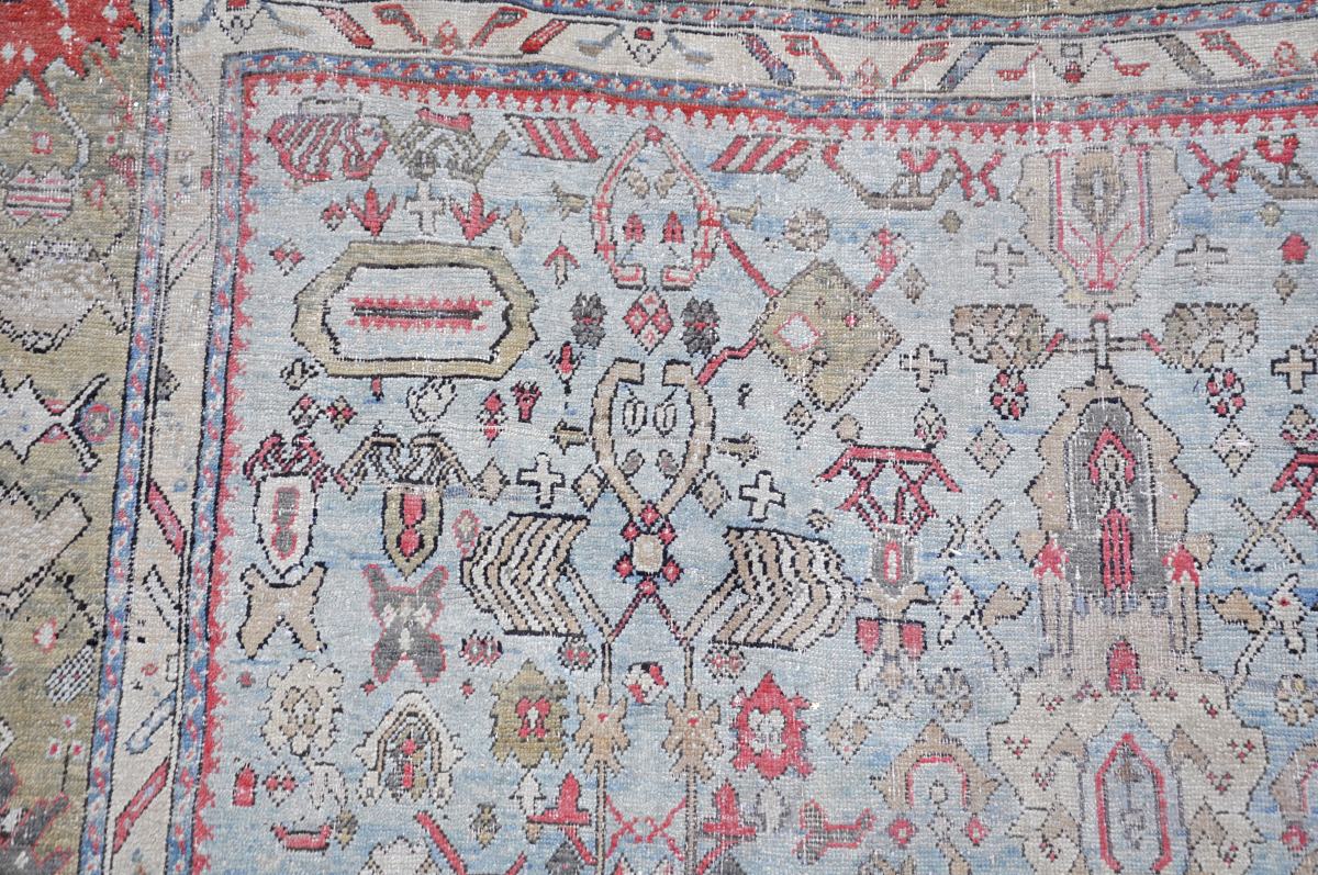 ASIE MINEURE, OUSHAK (?), TAPIS en laine à fond bleu ciel à décor en rouge, vert et crème de motifs floraux et géométriques. Bordure à fond vert flanquée de deux contre-bordures à fond crème.