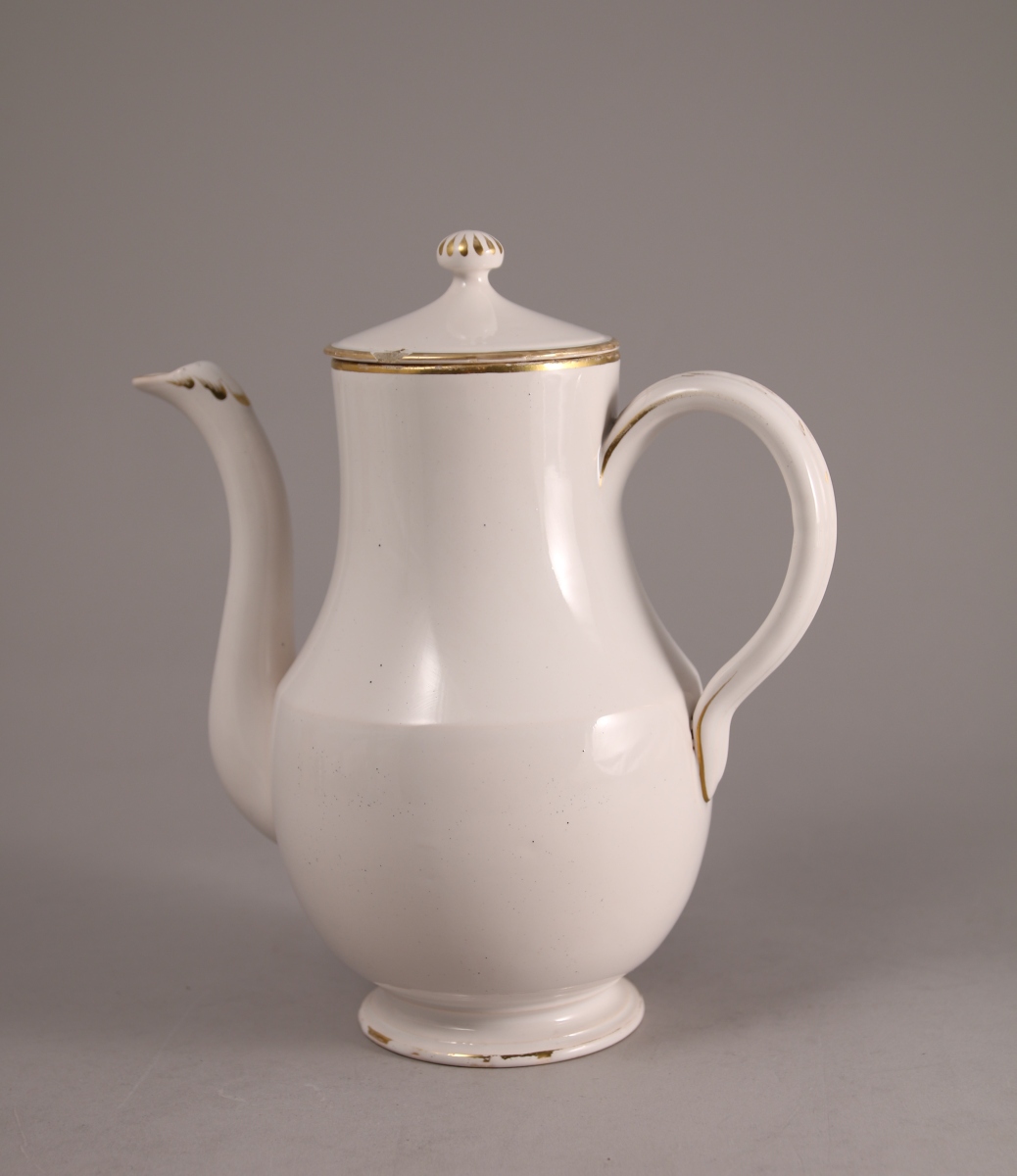 SAINT-CLÉMENT, faïence fine. CAFETIÈRE couverte. Fond blanc à rehauts or. XIXe.