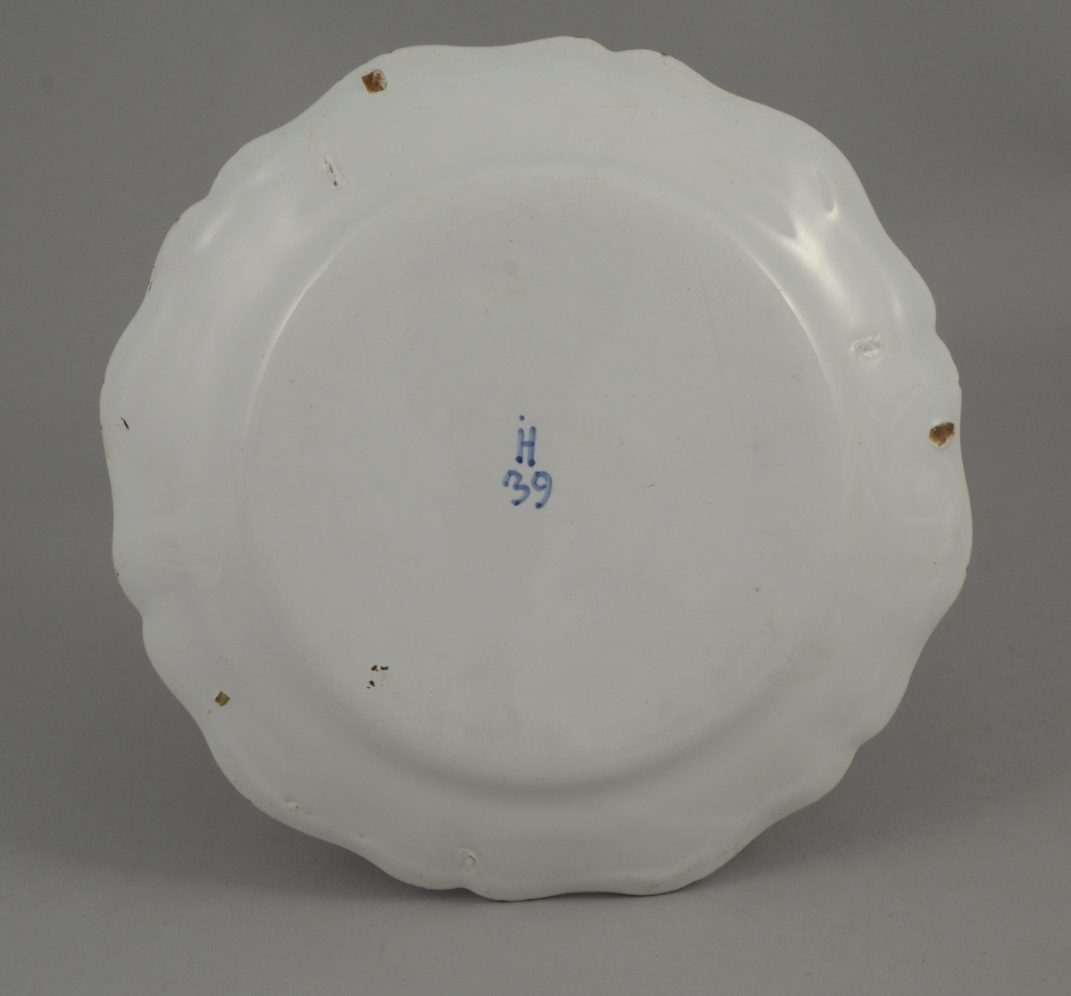 STRASBOURG. PAIRE D'ASSIETTES à bord contourné, décor polychrome d'un bouquet de fleurs décentré et sur l'aile de fleurettes. Manufacture de Joseph Hannong. Marquée "JH 39" et "JH 60".