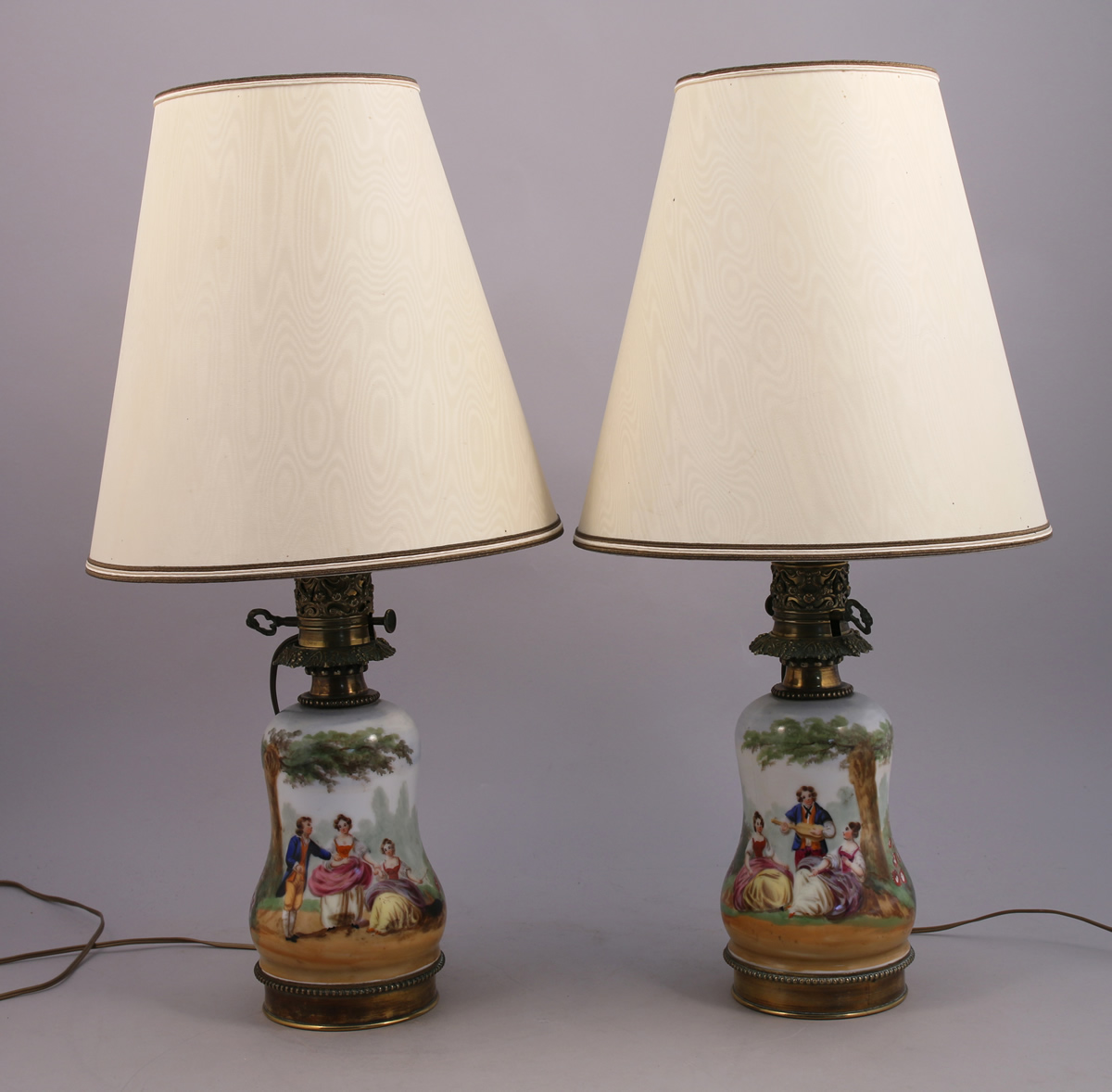 PAIRE de VASES de forme balustre en porcelaine polychrome à décor de scènes galantes.