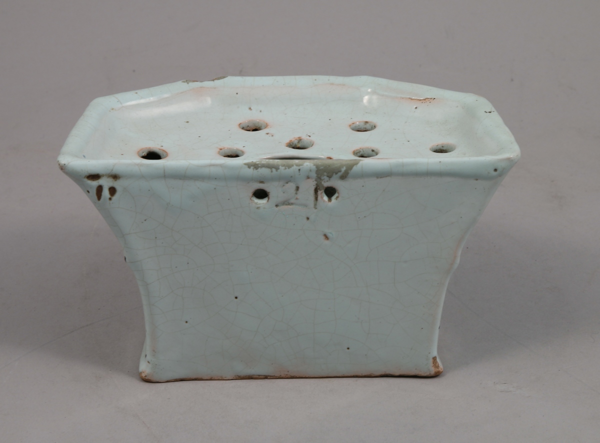 Haut. 10, Larg. 18,5, Prof. 9,5 cm. (éclats, égrenures).