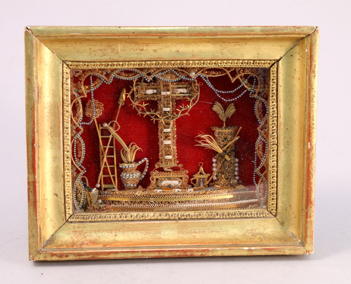 RELIQUAIRE. La Croix, paperolle. Inscriptions: Aurélie, Denis Basle, Restitut. Juylien, Rustique, Gildas, Vital, Félix.