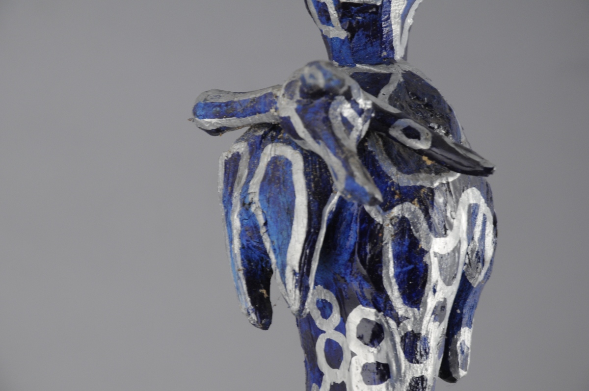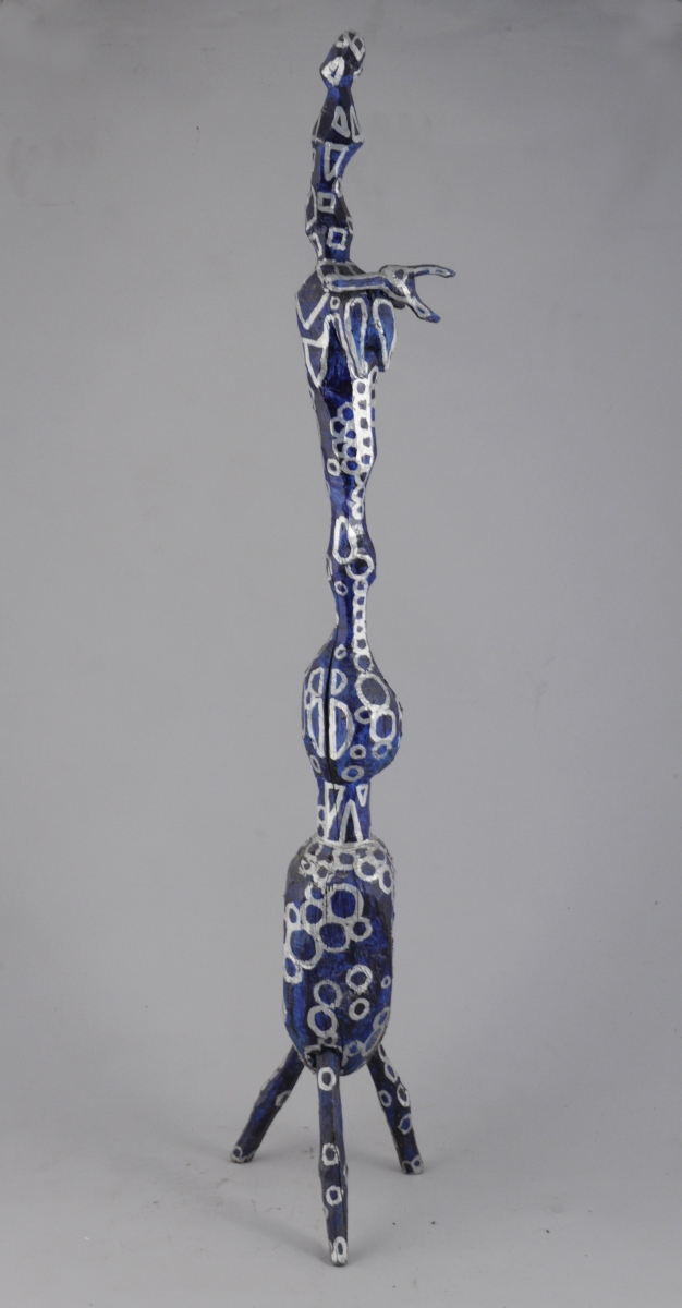 Sculpture en bois peint en noir, bleu, argent, Circa 1958, repris dans les années 1990.