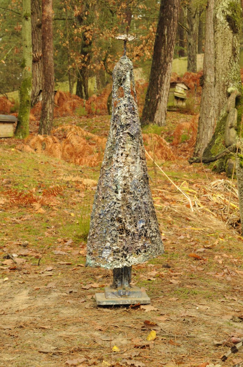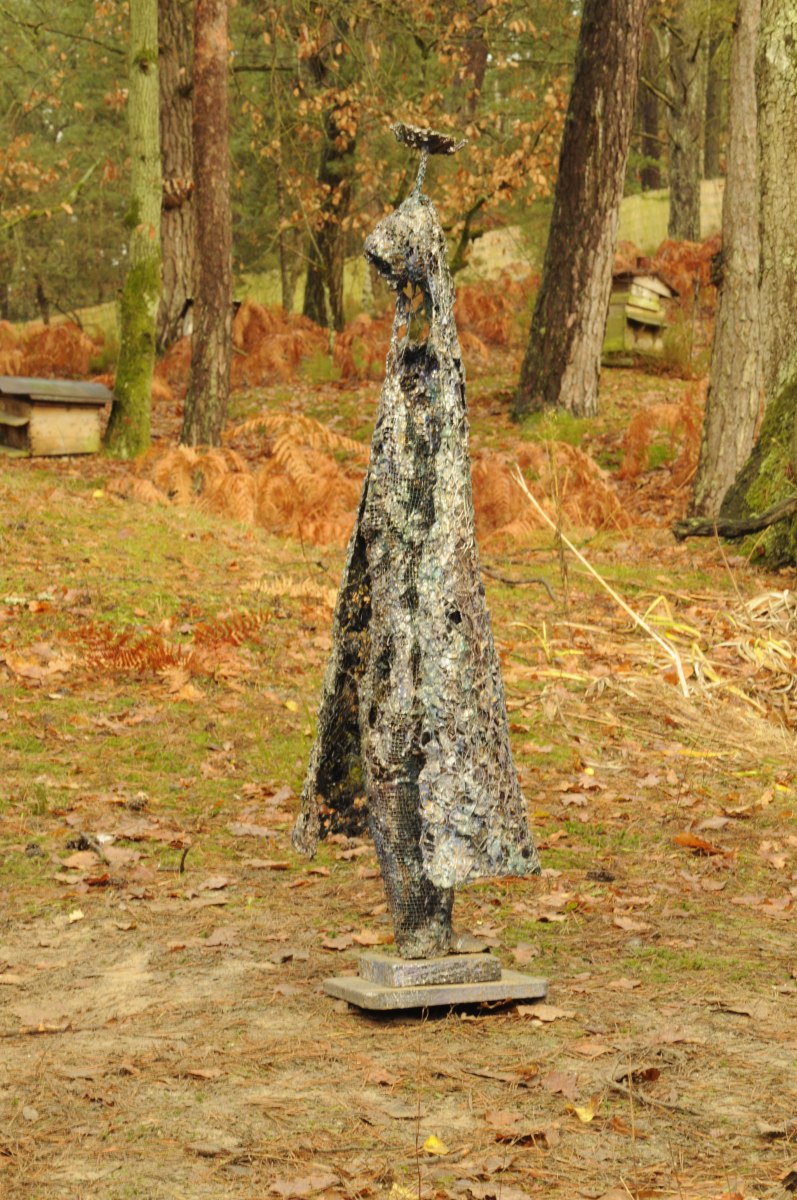 Sculpture en plastique fondu sur grillage, incrustations diverses et peintures.