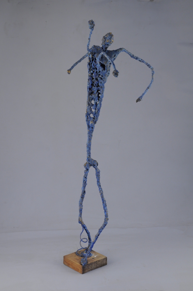 Sculpture en grillage et ciment peint.