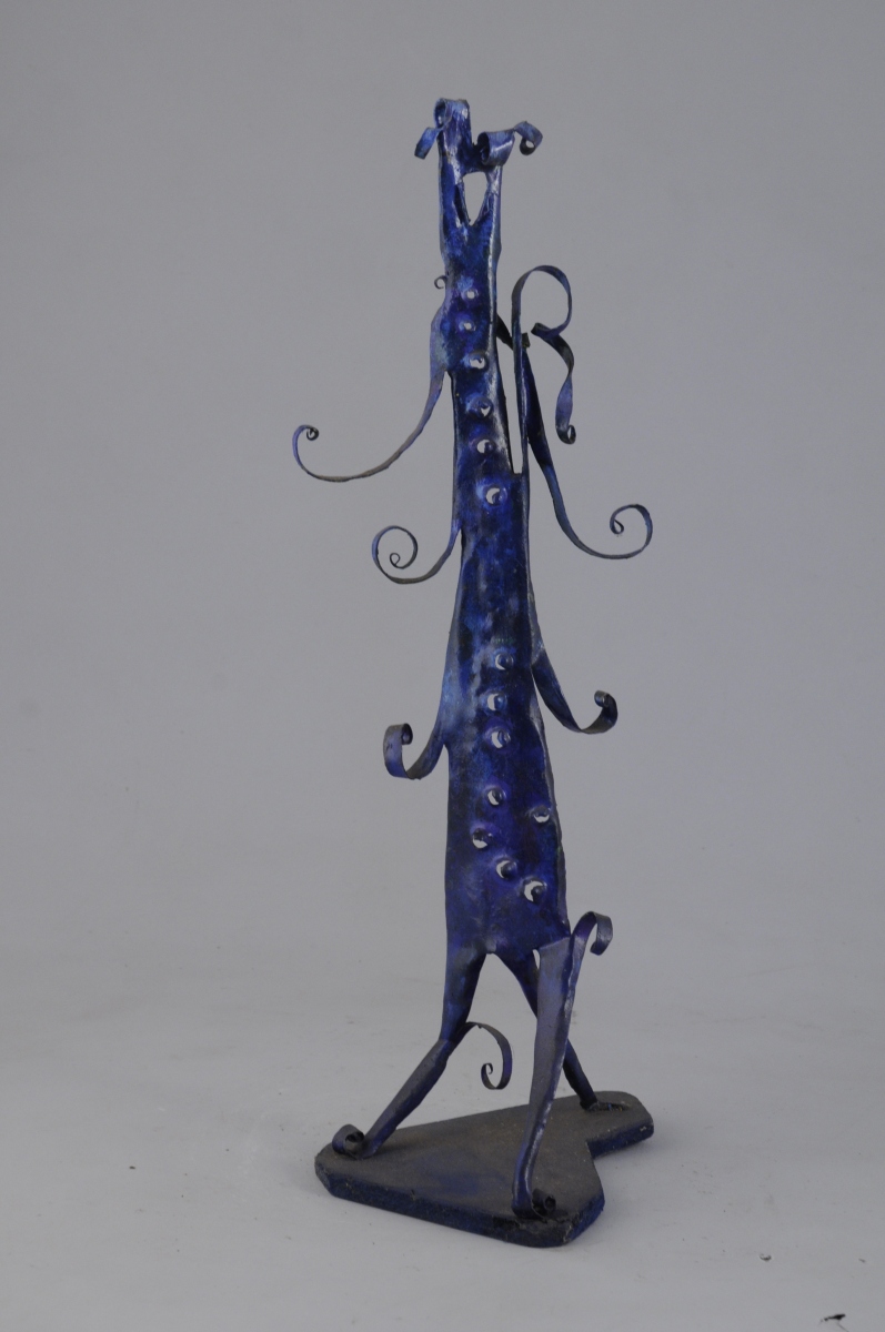 Sculpture en tôle peinte en bleu sur socle de de bois, signé sous le socle et daté 1995