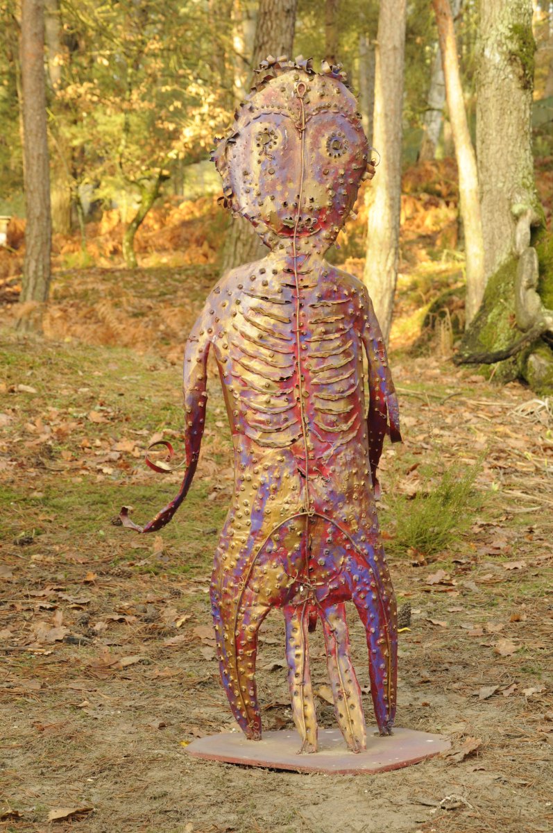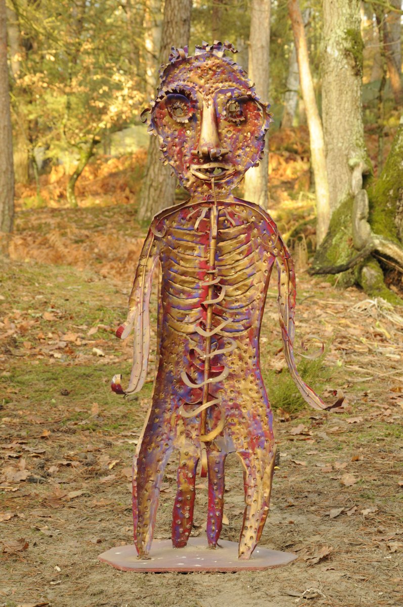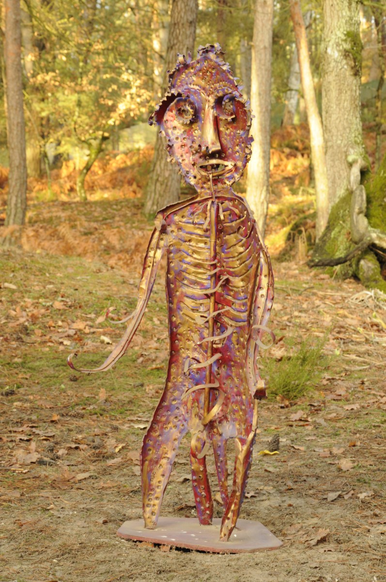 Sculpture en tôle découpée peinte en rouge, signé sous le socle et daté.
