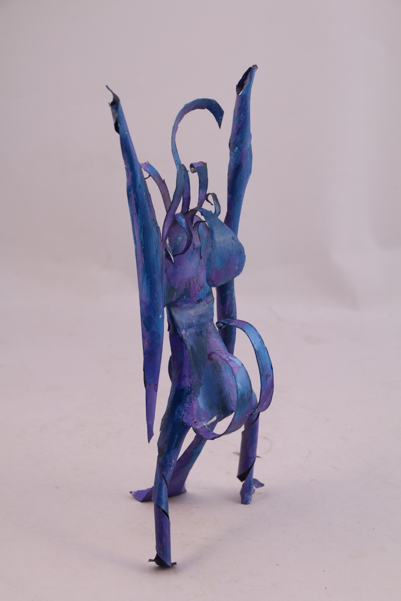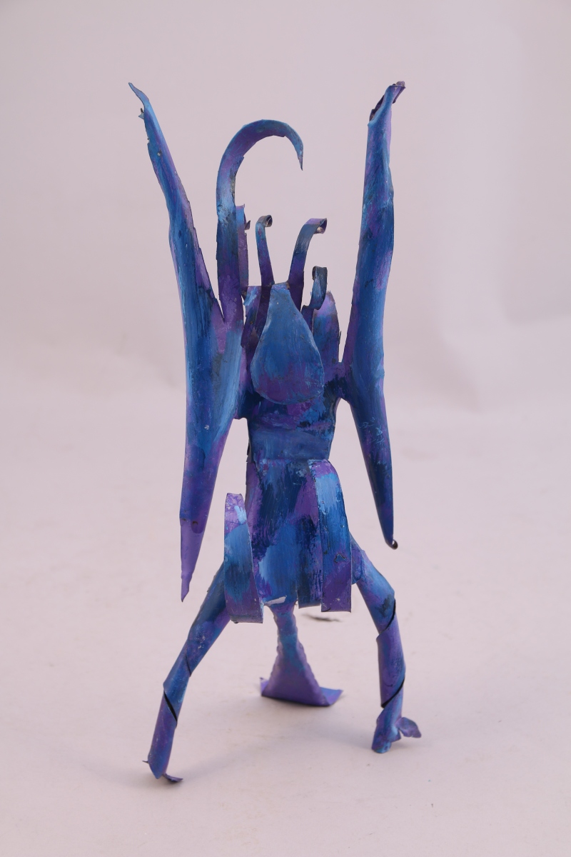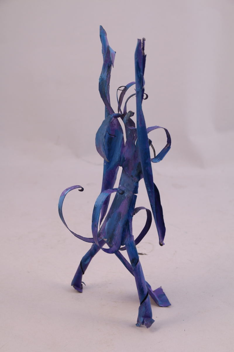 Sculpture en tôle peinte bleue.