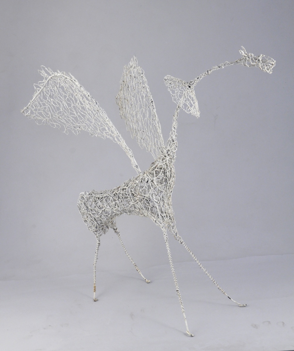 Sculpture en grillage peint en blanc.