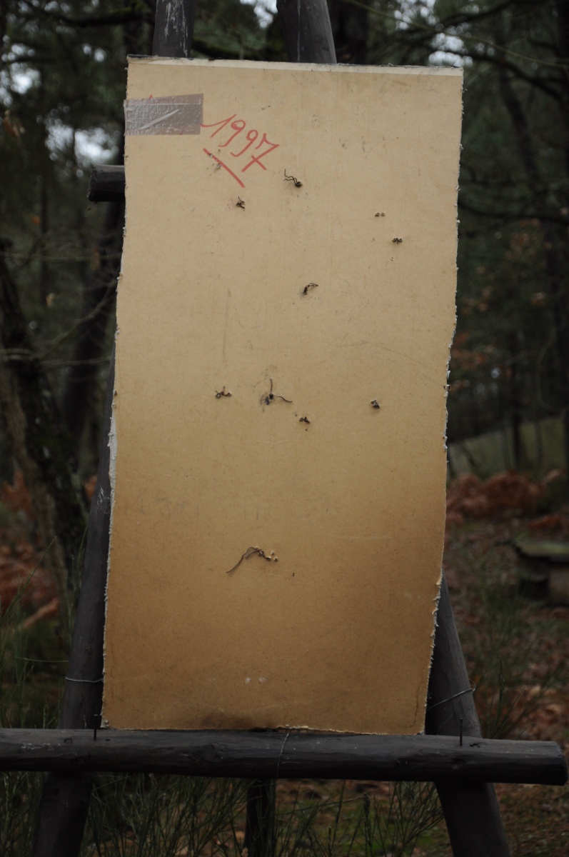 Bas-relief en tôle peinte sur carton peint et incrustation, daté " 1997 "